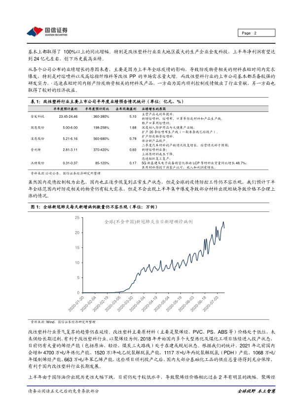 行业概述及业绩分析: 详细分析了改性塑料行业2020年上半年的业绩表现,并对业绩增长的原因进行了深入剖析,指出防疫物资需求和下游需求修复是主要驱动因素。