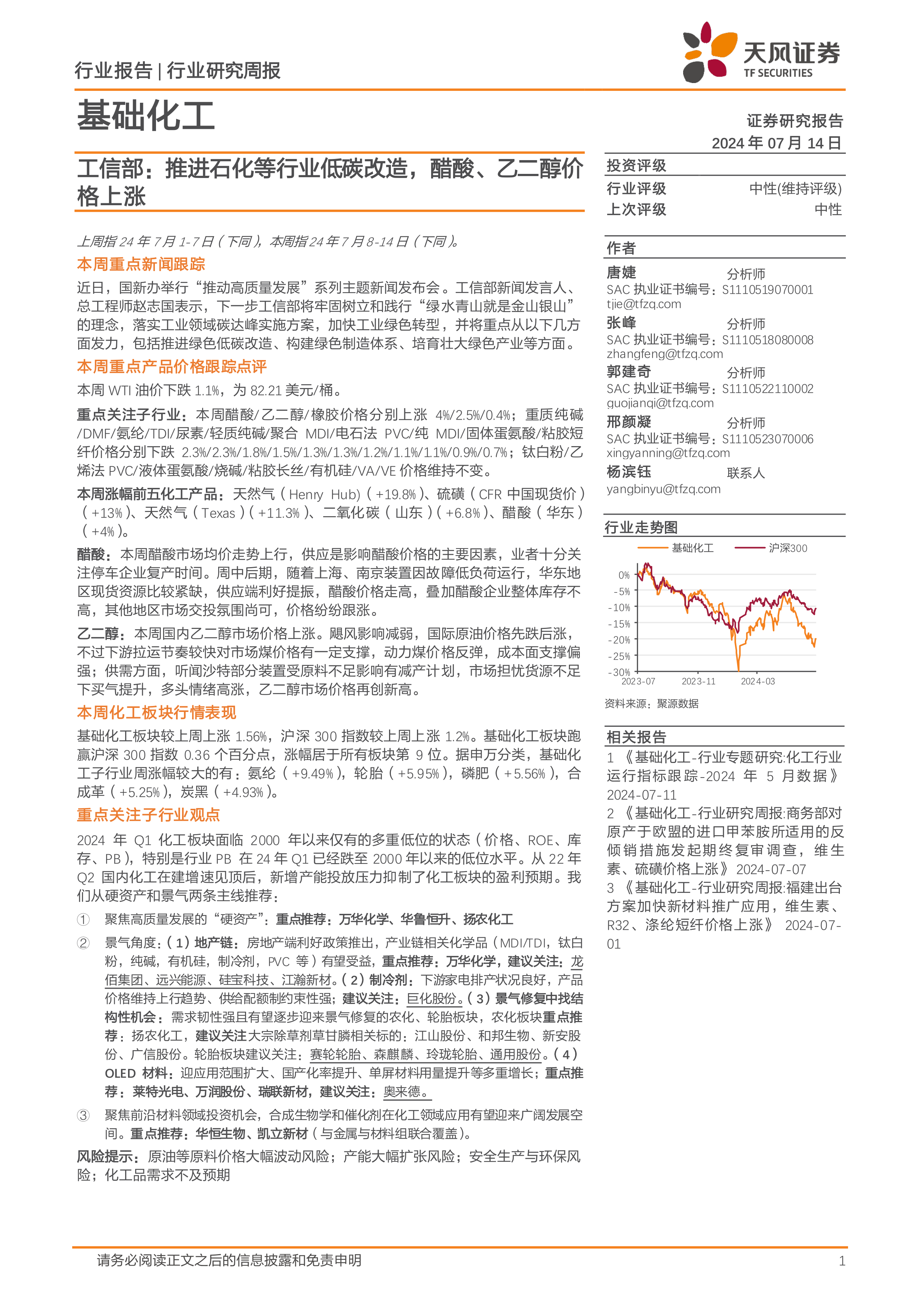 基础化工行业报告-工信部:推进石化等行业低碳改造,醋酸、乙二醇价格上涨