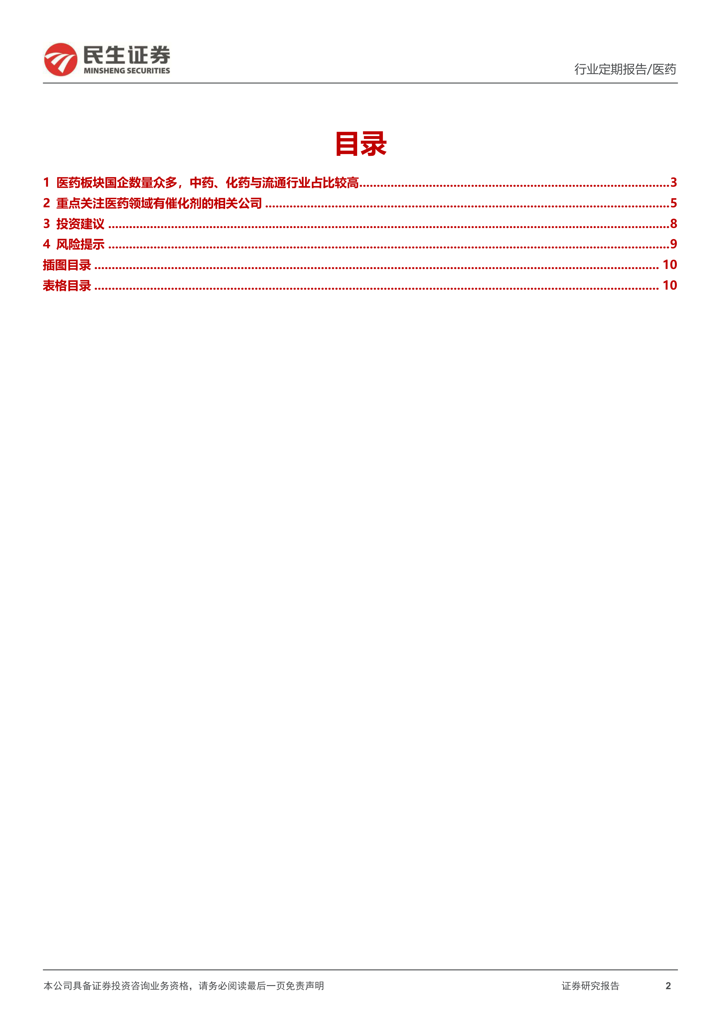 投资建议: 医药领域国有企业数量众多,受益国资委发起的国有企业改革行动,因此建议关注医药领域中有催化剂的重点公司如股权激励、股权变更、年度发展规划等, 维持“推荐” 评级。
