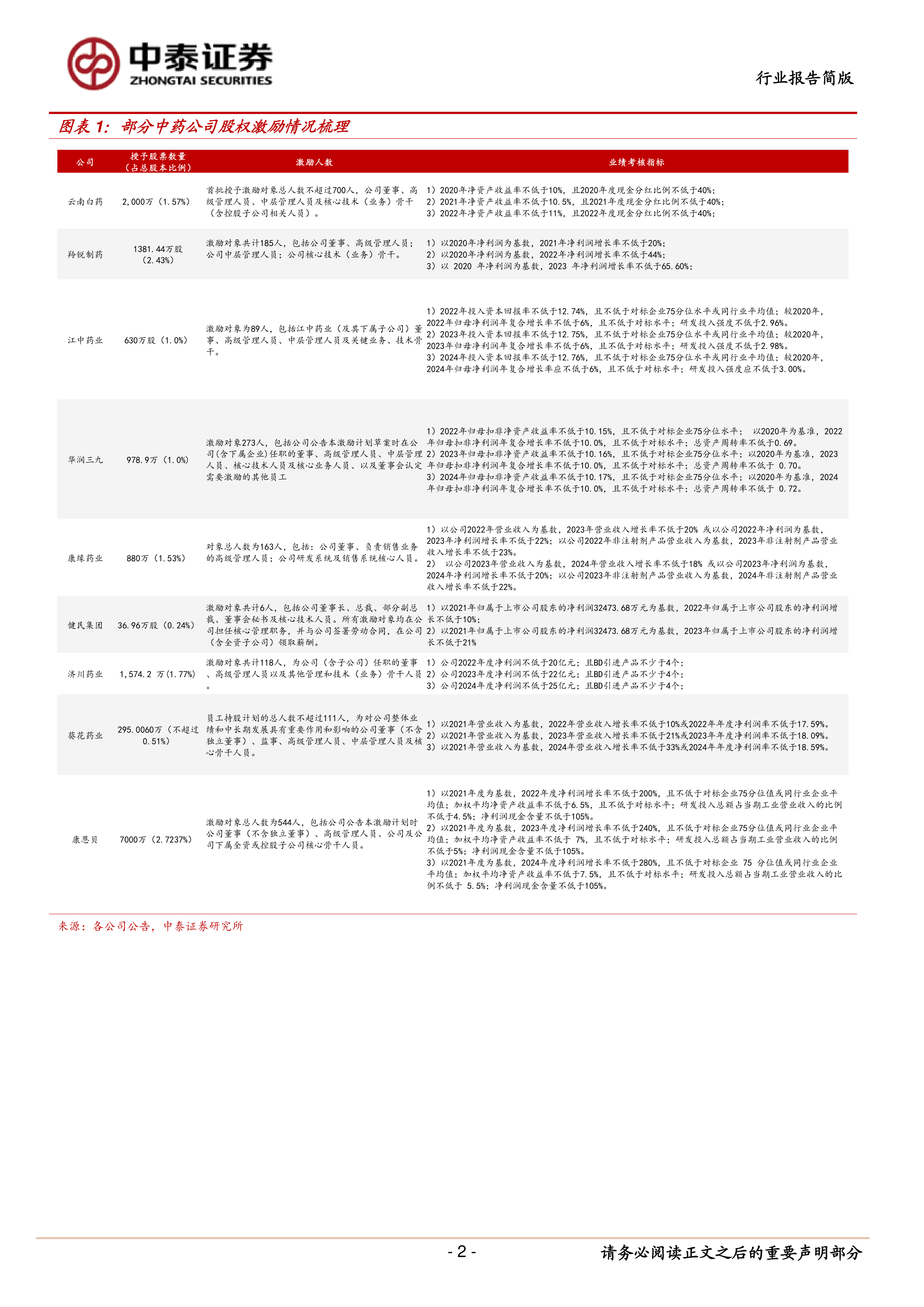 报告建议投资者积极把握中药行业投资机遇,并重点推荐了部分具有投资价值的个股。同时,报告也提示了政策落地不及预期以及市场竞争加剧等潜在风险。 报告还提供了部分中药公司股权激励情况的梳理,以辅助投资者进行投资决策。