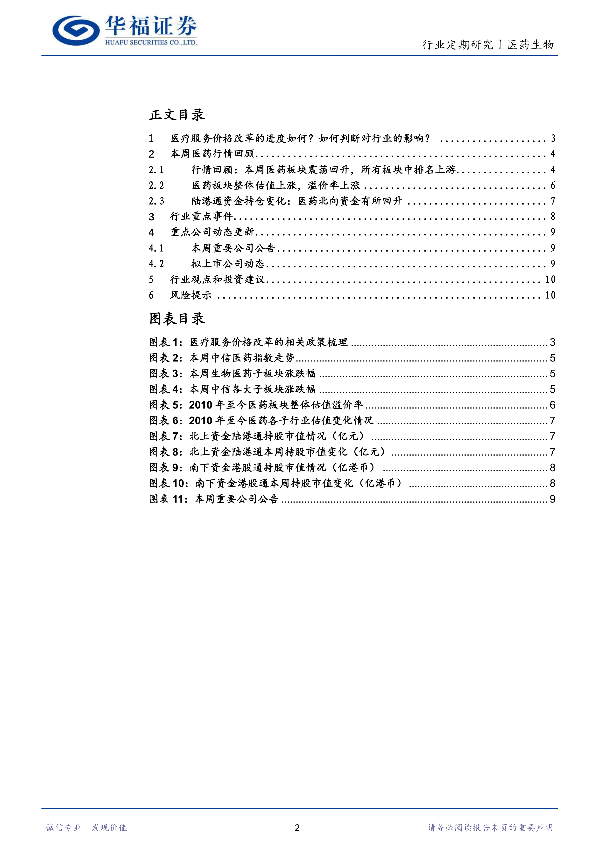 本报告的核心观点是:医疗服务价格改革正在稳步推进,对行业影响深远;三季报行情值得关注;中成药及部分细分领域存在投资机会。具体而言: