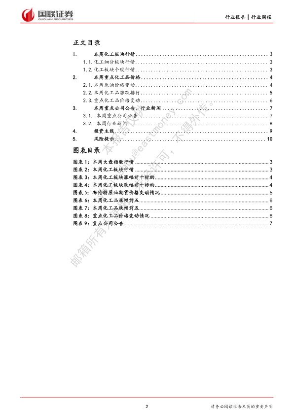报告最后列出了化工行业面临的主要风险,包括经济紧缩风险、原油价格大幅波动、国际贸易摩擦风险以及通货膨胀风险,提醒投资者注意投资风险。