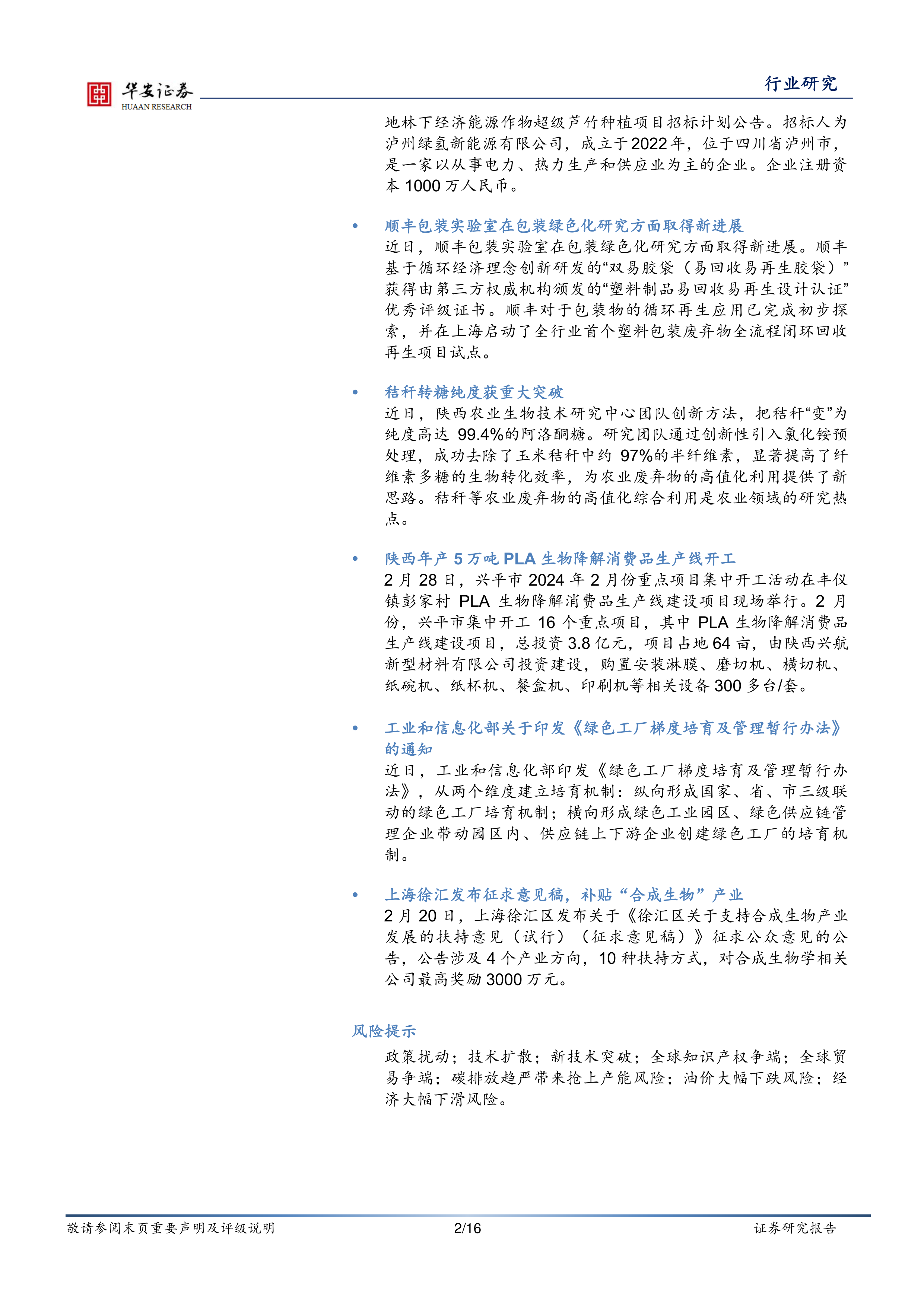 报告列举了国内外公司在研发方面的方向,包括万吨级秸秆糖制生物基化学品项目、生物质纤维素纤维项目、新生物经济业务开发、重组胶原蛋白领域突破等,展现了行业技术创新的活力。