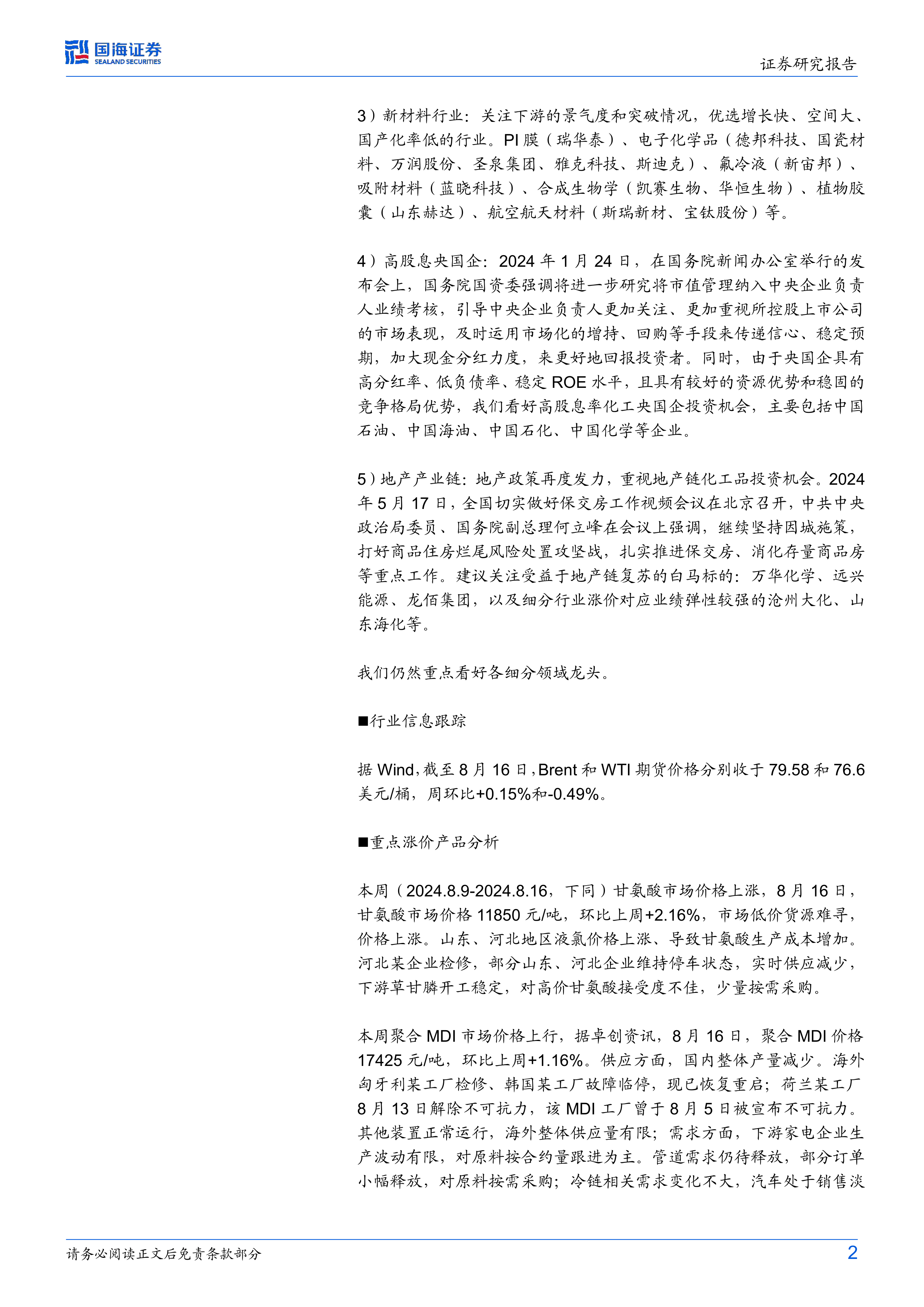 本报告基于2024年8月19日发布,对基础化工行业进行周报分析,内容涵盖市场观察、数据追踪、重点公司跟踪及风险提示等方面。