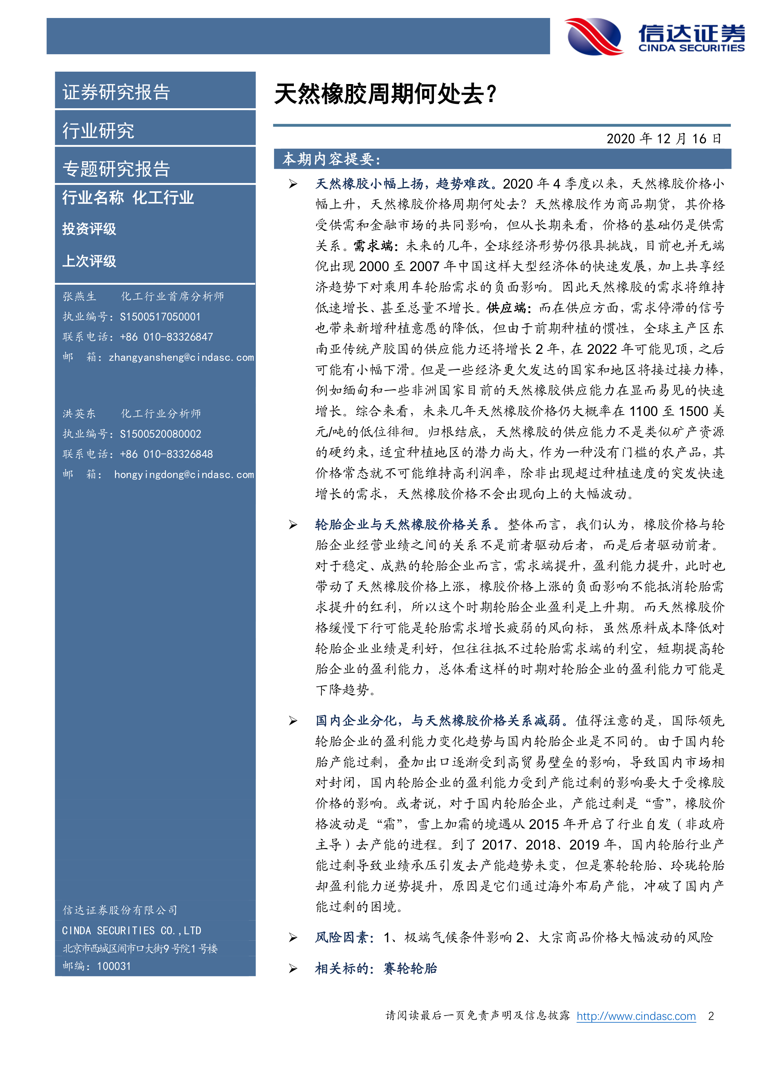化工行业:天然橡胶周期何处去?