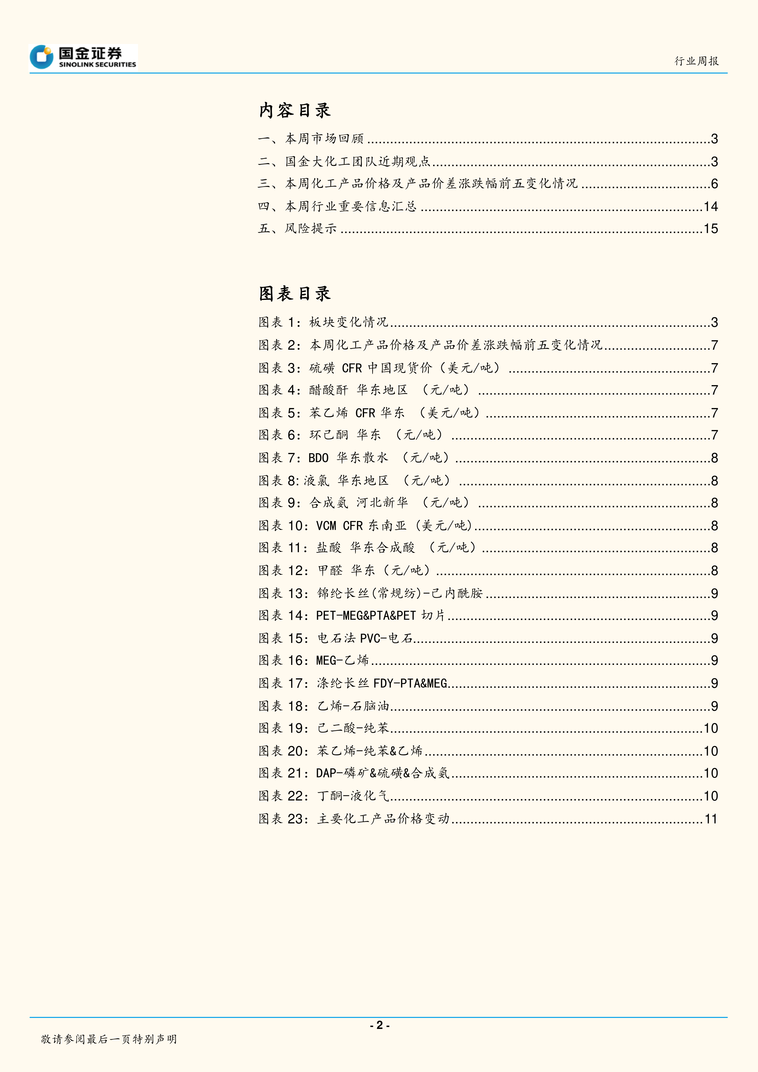 报告还分析了分散染料、DMC、化肥、煤化工产品(甲醇、合成氨、醋酸、乙二醇、DMF)、黏胶短纤、氨纶、聚合MDI、PVC糊树脂、环氧丙烷、有机硅DMC、草甘膦等产品价格走势,并给出了相应的预测。