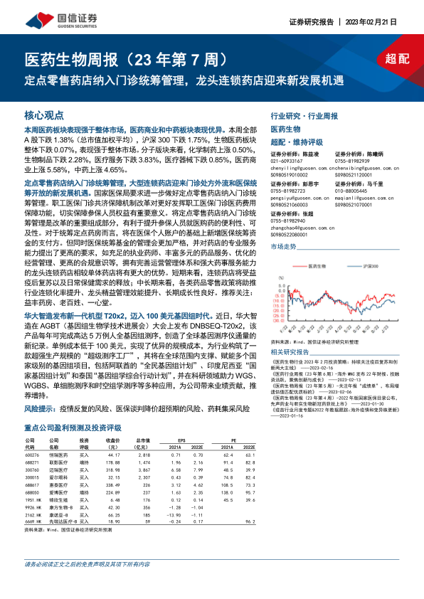 医药生物周报(23年第7周):定点零售药店纳入门诊统筹管理,龙头连锁药店迎来新发展机遇