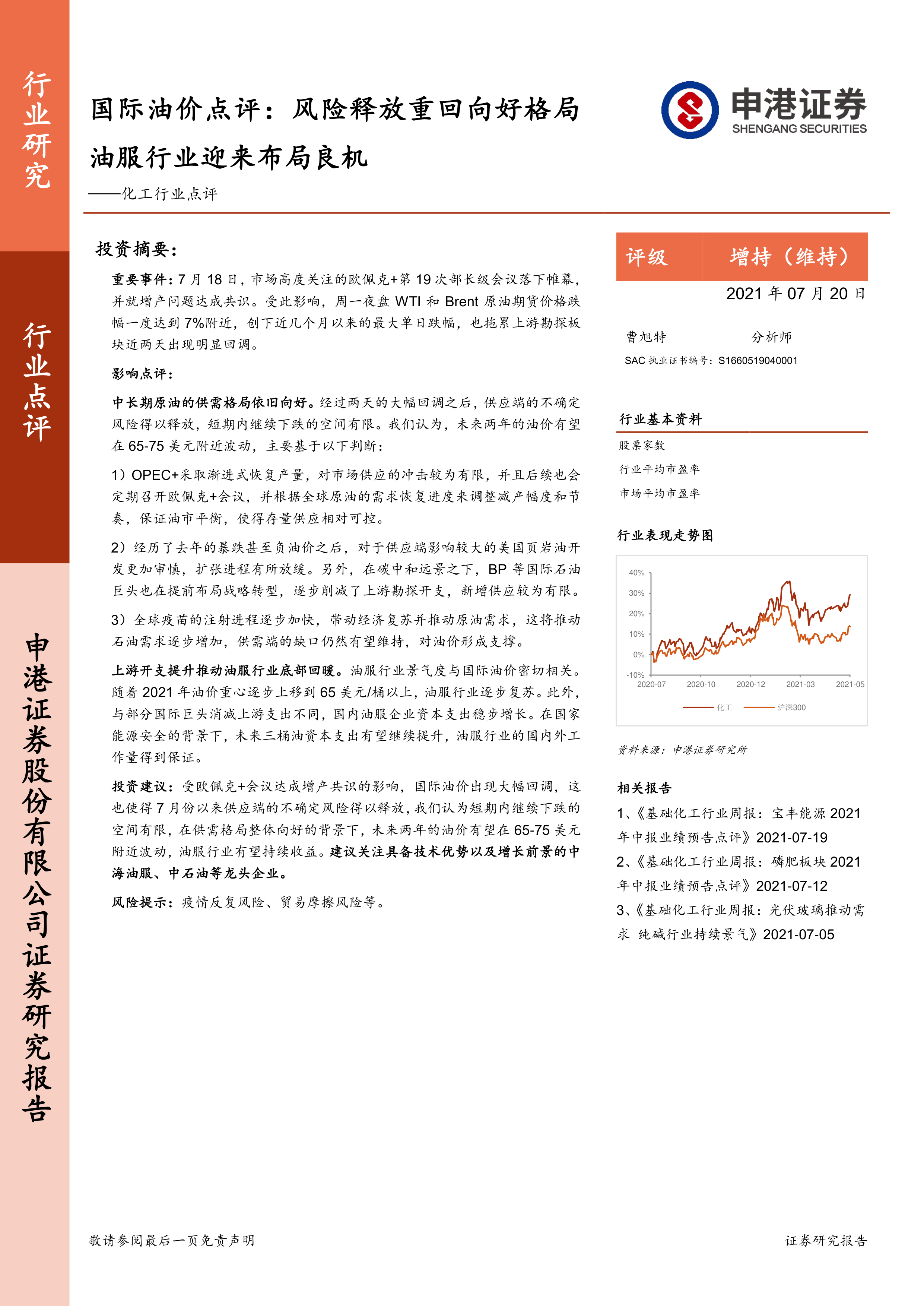 化工行业点评:国际油价点评:风险释放重回向好格局油服行业迎来布局良机