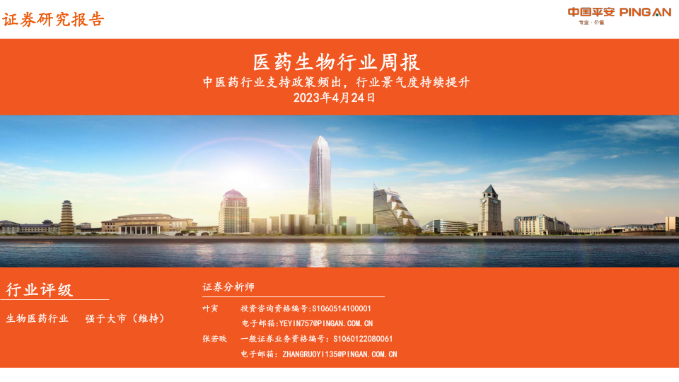医药生物行业周报:中医药行业支持政策频出,行业景气度持续提升