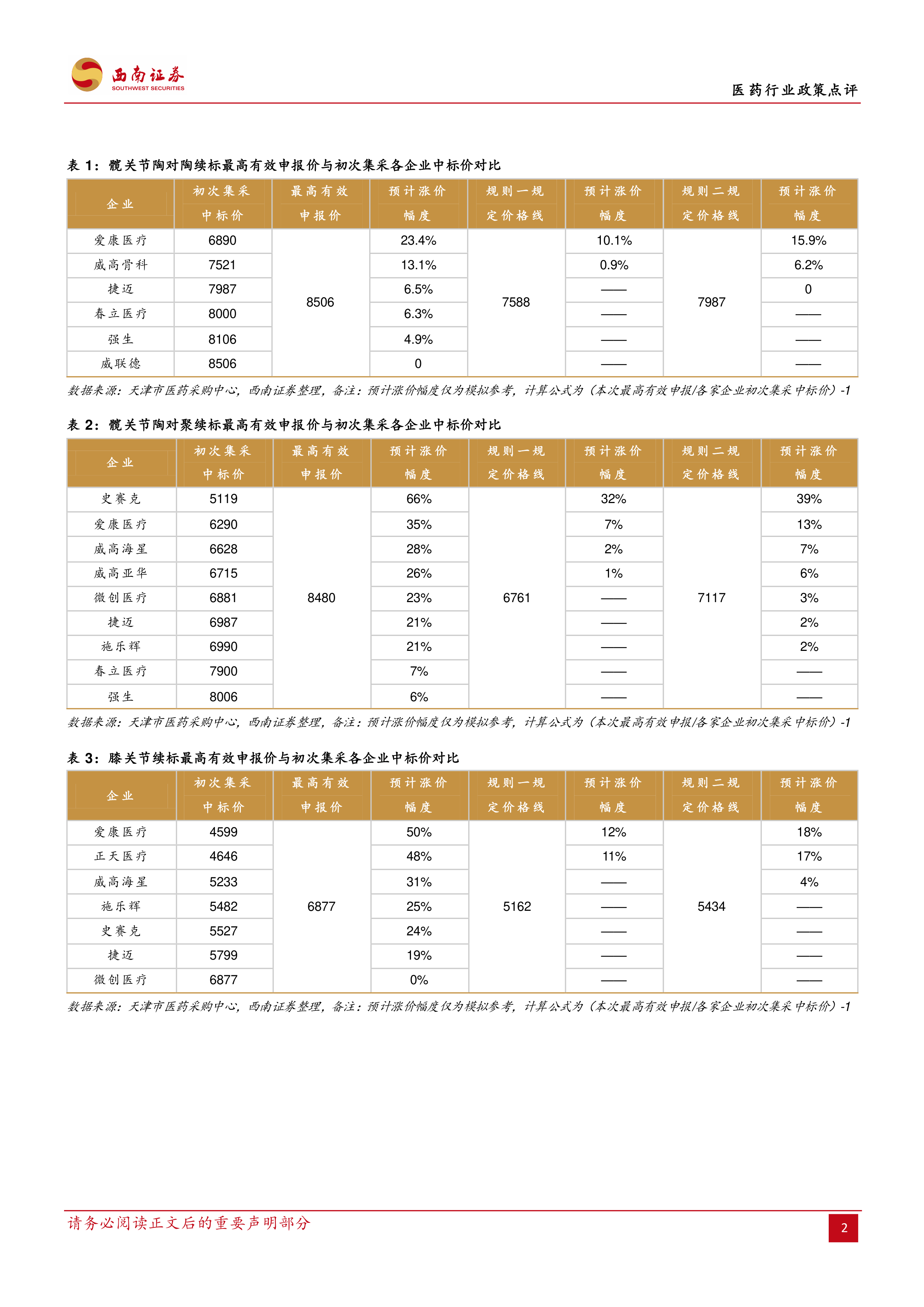 表2显示,髋关节陶对聚续标中,部分国产企业也存在一定的提价空间,这将有助于提升其市场竞争力。