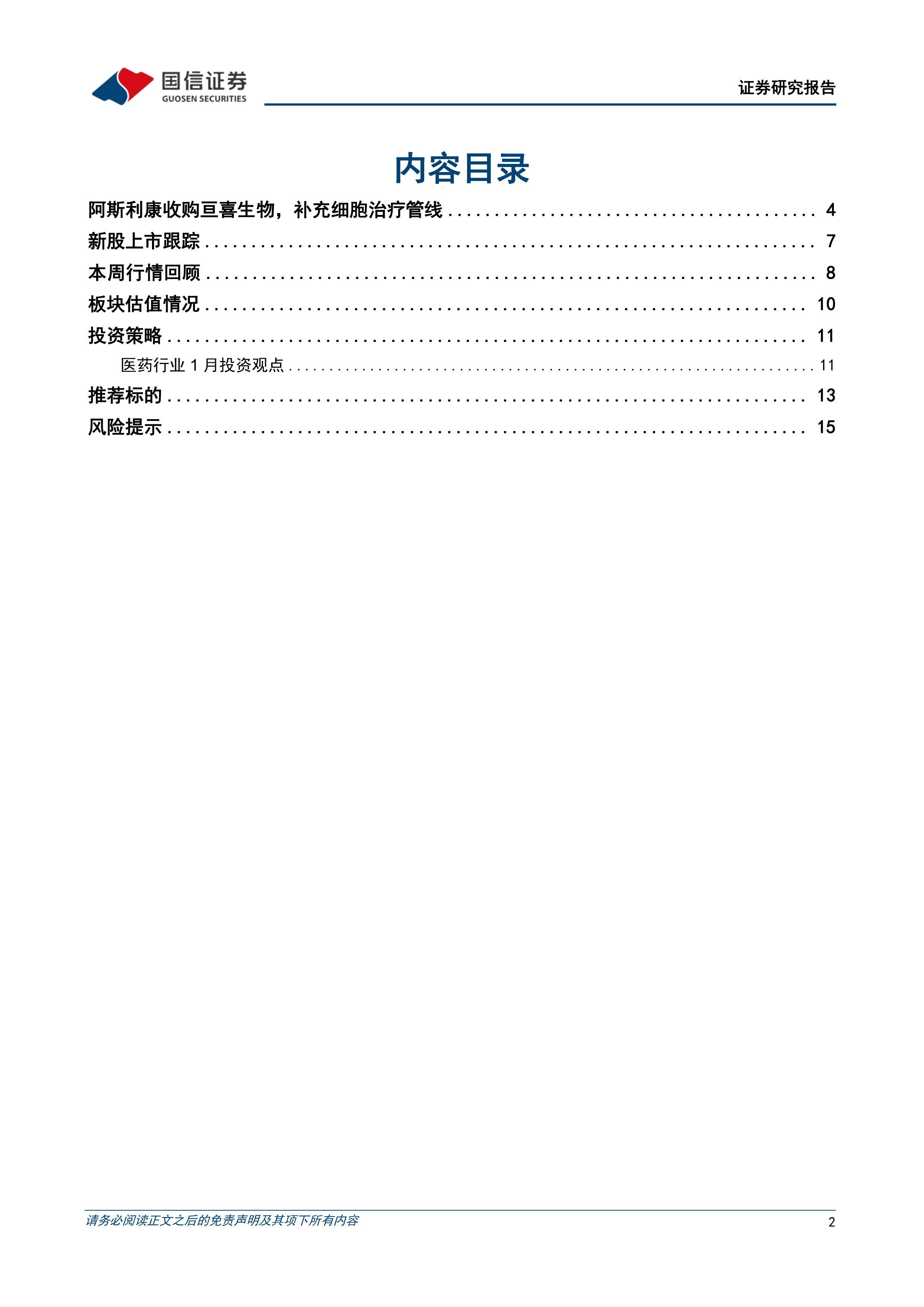 本报告分析了本周医药市场行情,重点关注了阿斯利康收购亘喜生物事件对国内创新药行业的影响,并对2024年医药行业投资策略进行了展望。报告指出,医药板块本周表现弱于整体市场,但生物制品板块领涨。阿斯利康的收购行为为国内创新药企业提供了借鉴,建议关注跨国药企的并购布局和技术平台。2024年,建议投资者积极布局“全球创新+患者获益”两大主线,关注具备差异化创新能力和患者获益能力的优质公司。报告最后列出了多家重点公司的盈利预测和投资评级,为投资者提供参考。 需要注意的是,报告中提及的投资建议仅供参考,投资者应根据自身情况进行独立判断,并承担相应的投资风险。