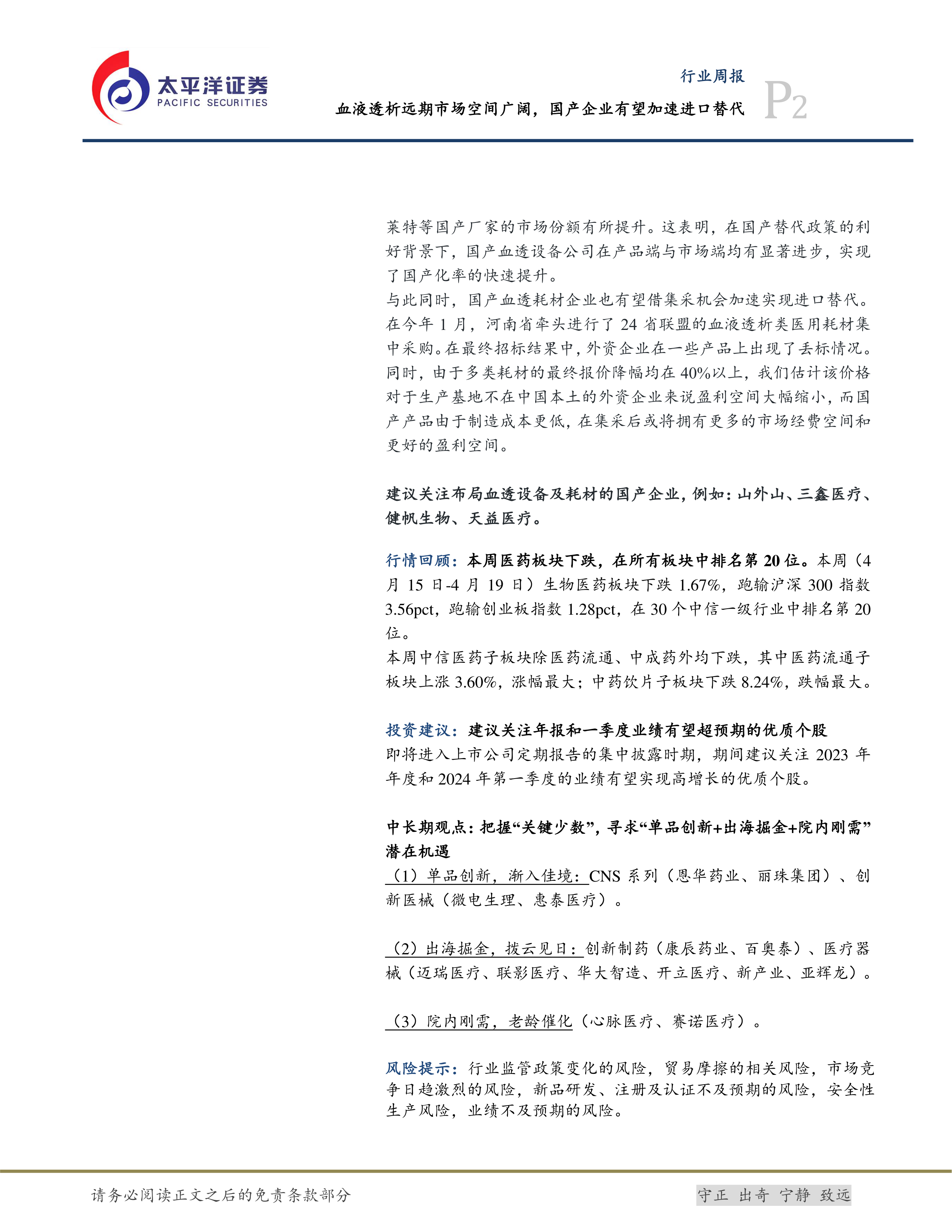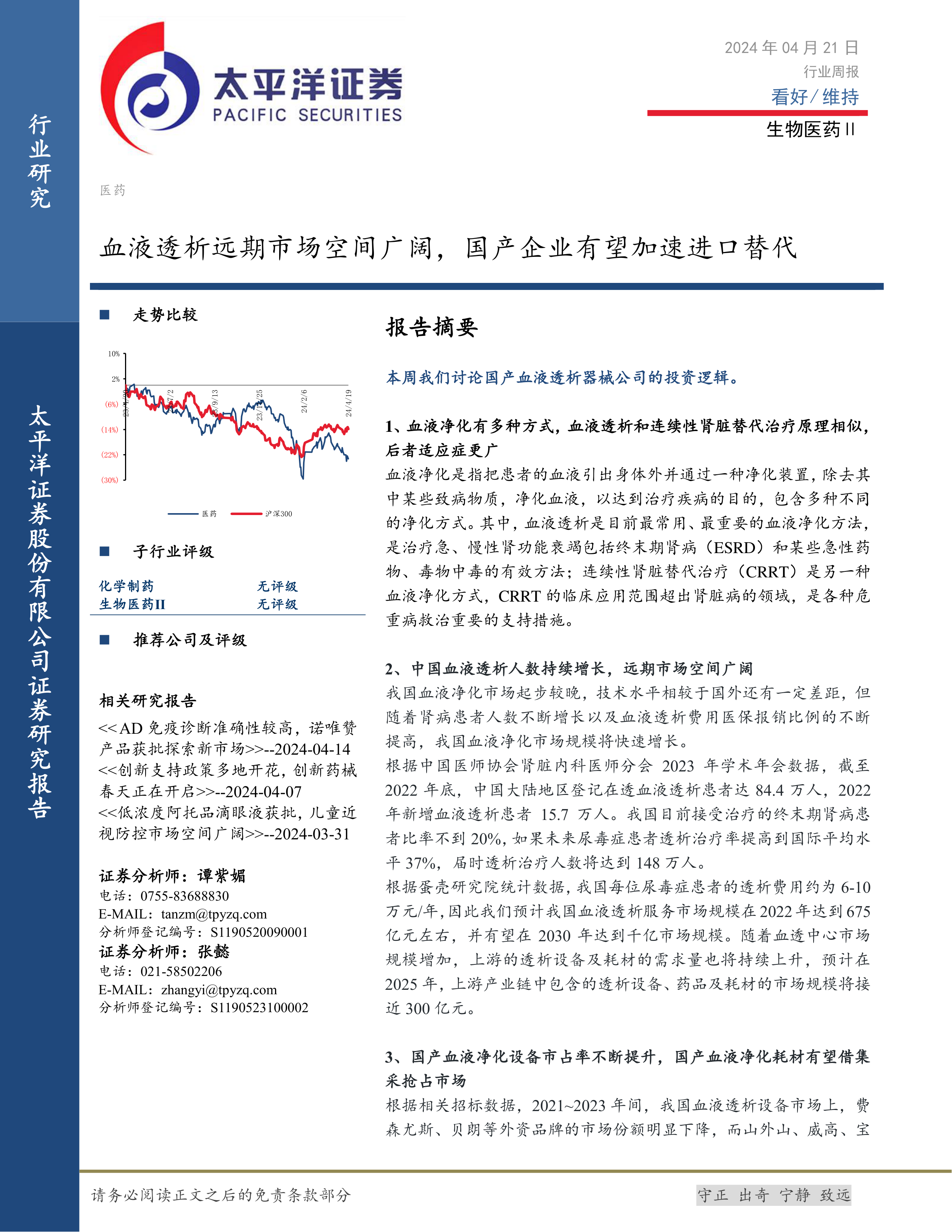 生物医药Ⅱ行业周报:血液透析远期市场空间广阔,国产企业有望加速进口替代