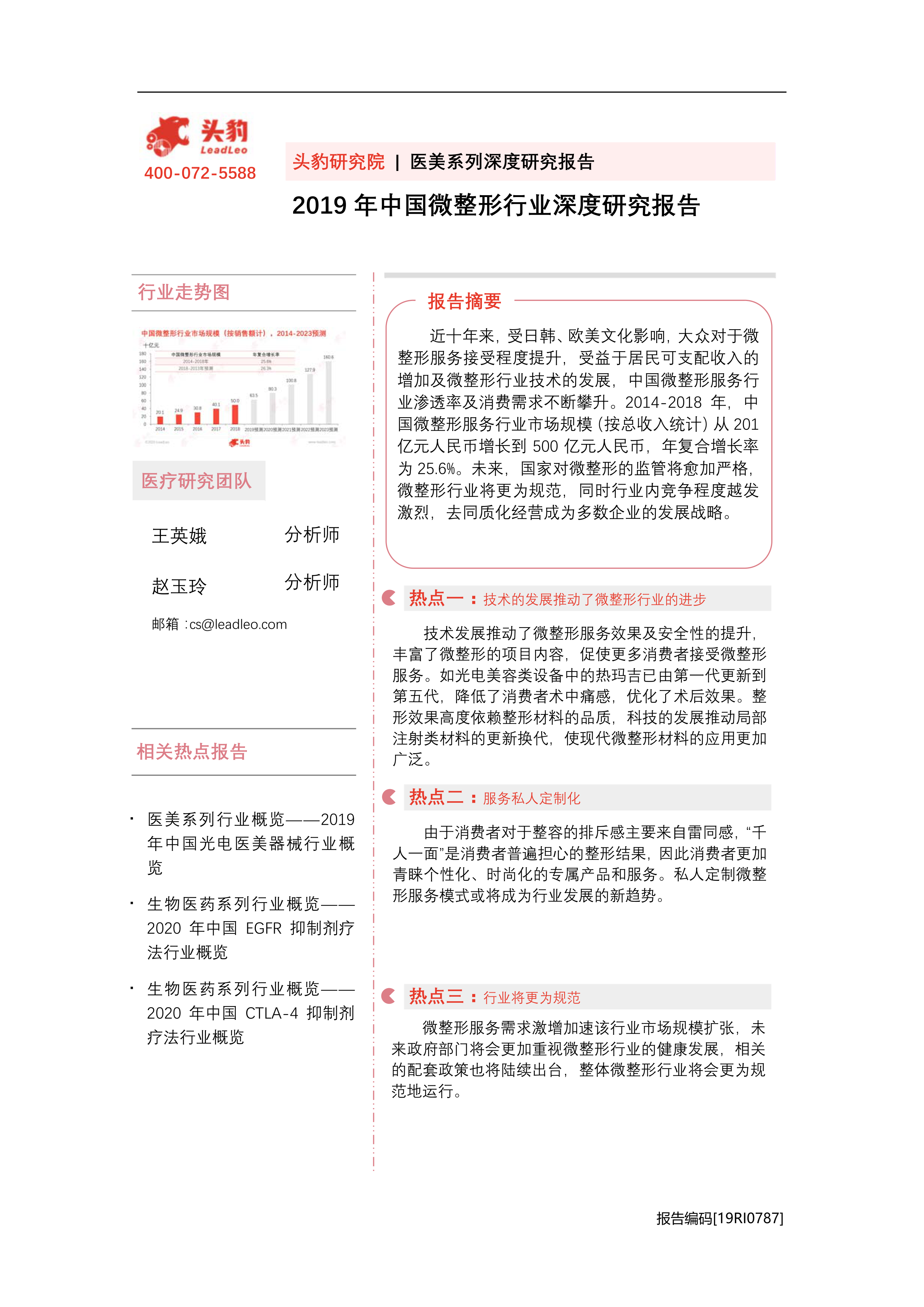 医美系列深度研究报告:2019年中国微整形行业深度研究报告