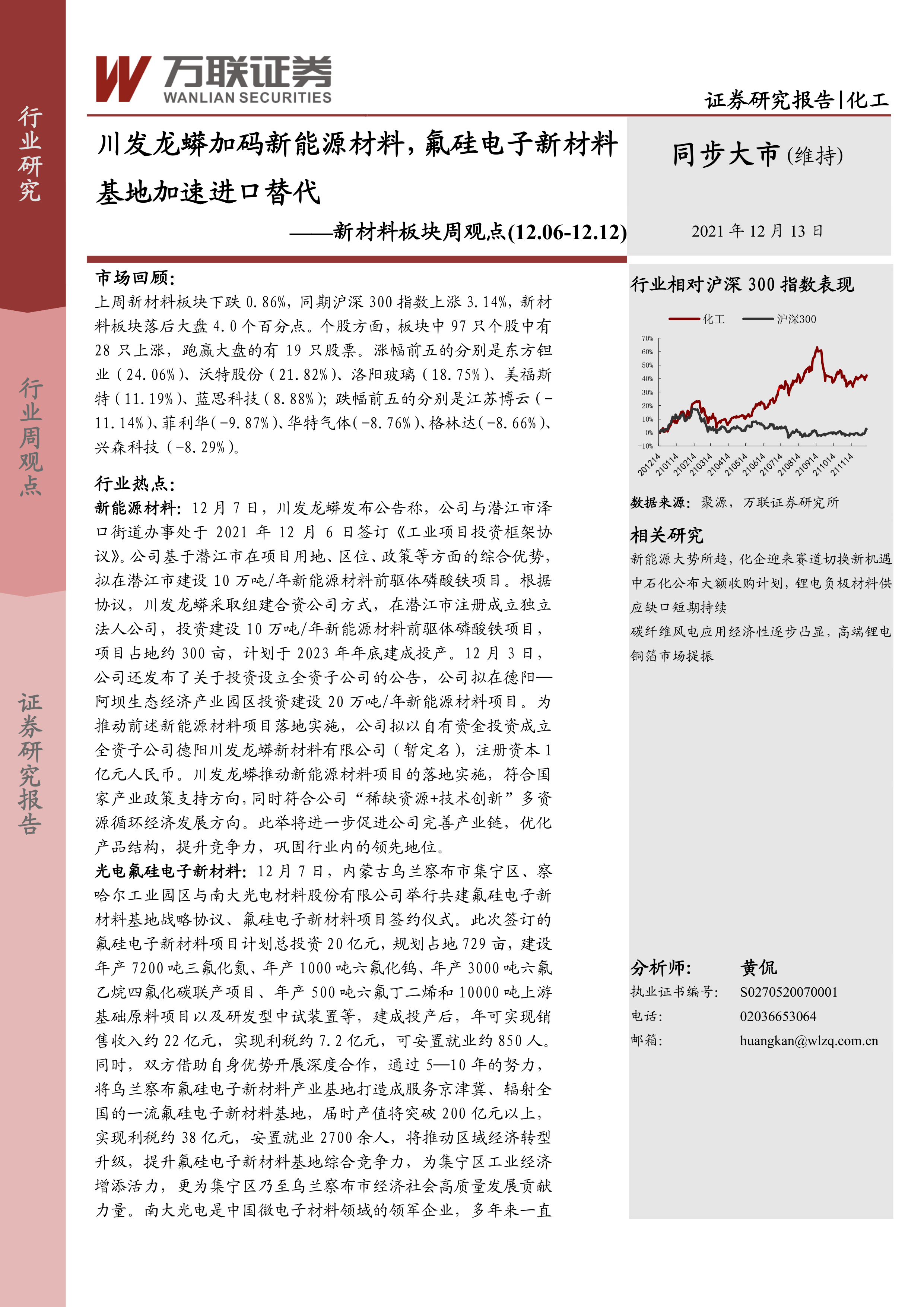 新材料板块周观点:川发龙蟒加码新能源材料,氟硅电子新材料基地加速进口替代