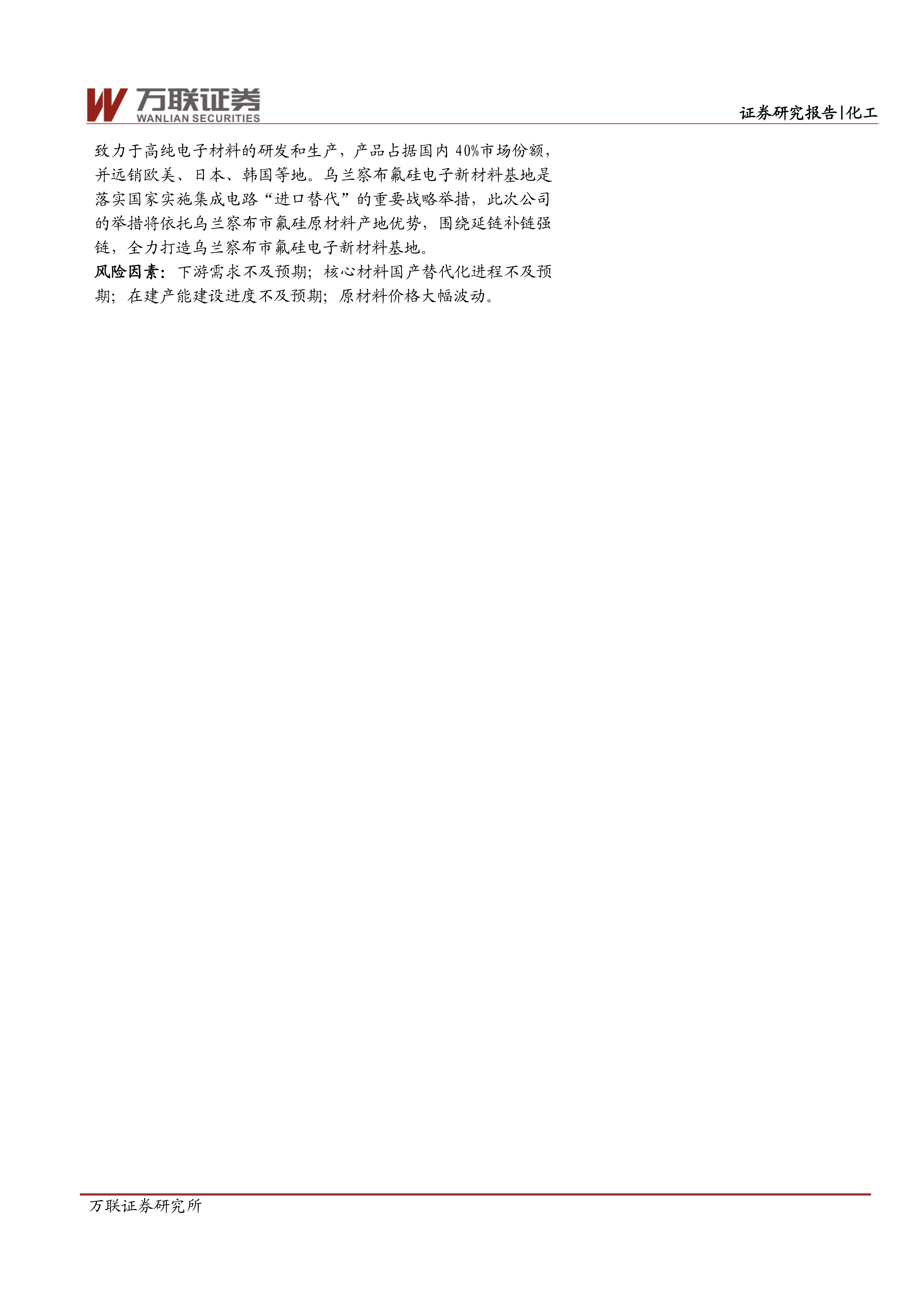 风险因素:下游需求不及预期;核心材料国产替代化进程不及预期;在建产能建设进度不及预期;原材料价格大幅波动。