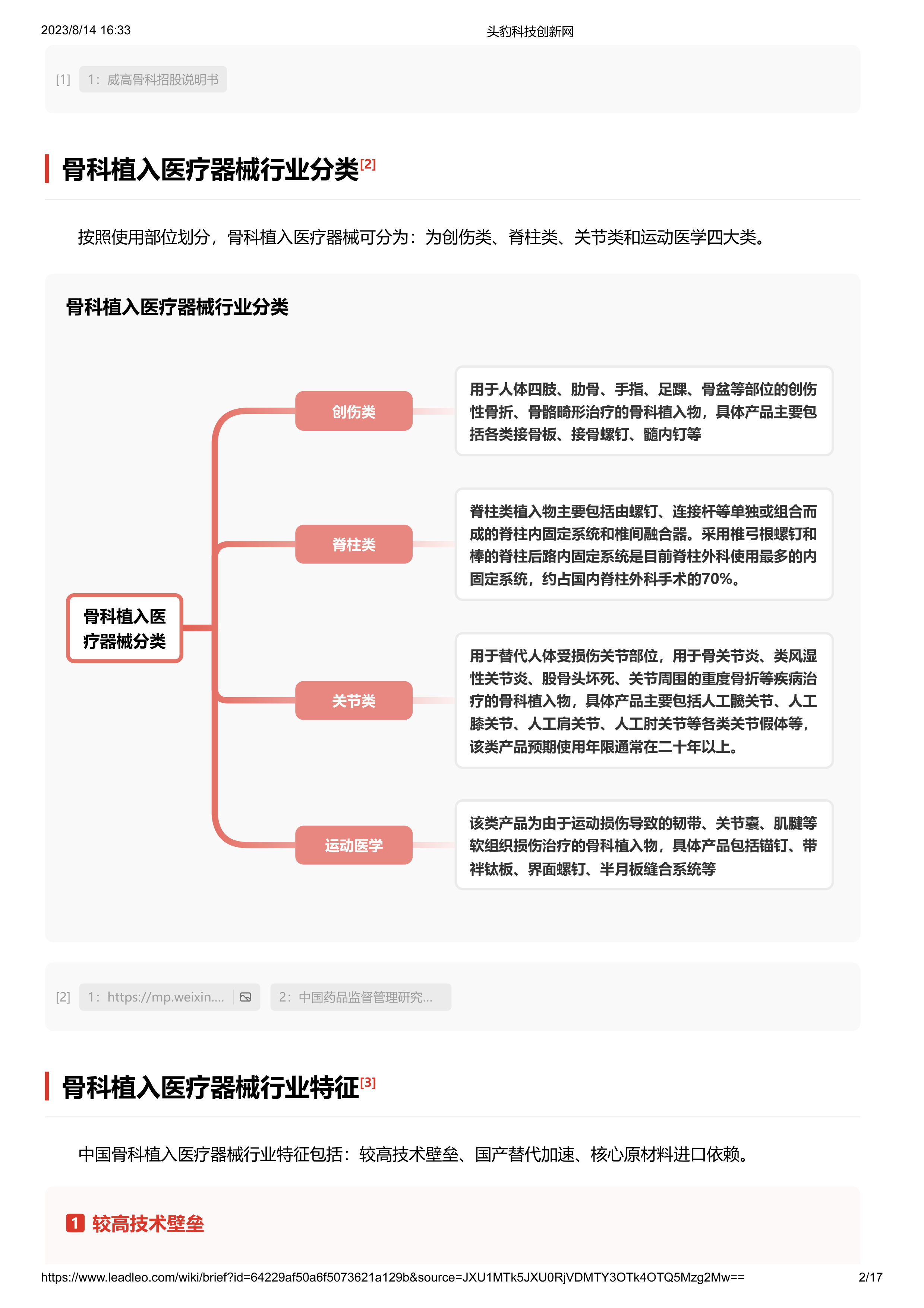 报告简要分析了春立医疗、大博医疗和威高骨科三家代表性企业的财务数据和竞争优势,突显了不同企业在研发能力、产品线布局和市场竞争策略方面的差异。