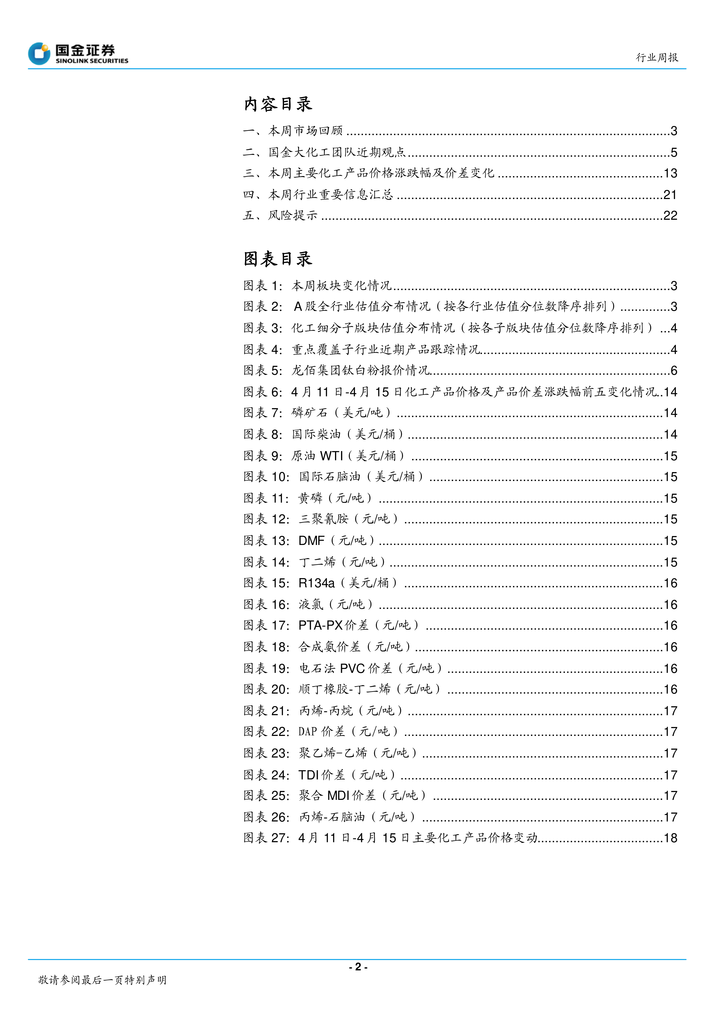 本报告基于市场数据,对本周化工市场进行了全面分析,指出市场整体震荡下行,但部分细分领域表现强势。 报告重点关注了通胀主线和稳增长方向的投资机会,并对重点化工产品价格、价差以及行业重要事件进行了详细解读,同时提示了潜在的风险因素。 报告内容翔实,分析深入,为投资者提供了有价值的参考信息。 然而,报告信息基于公开资料和特定时间点的判断,未来市场走势存在不确定性,投资者需谨慎决策。
