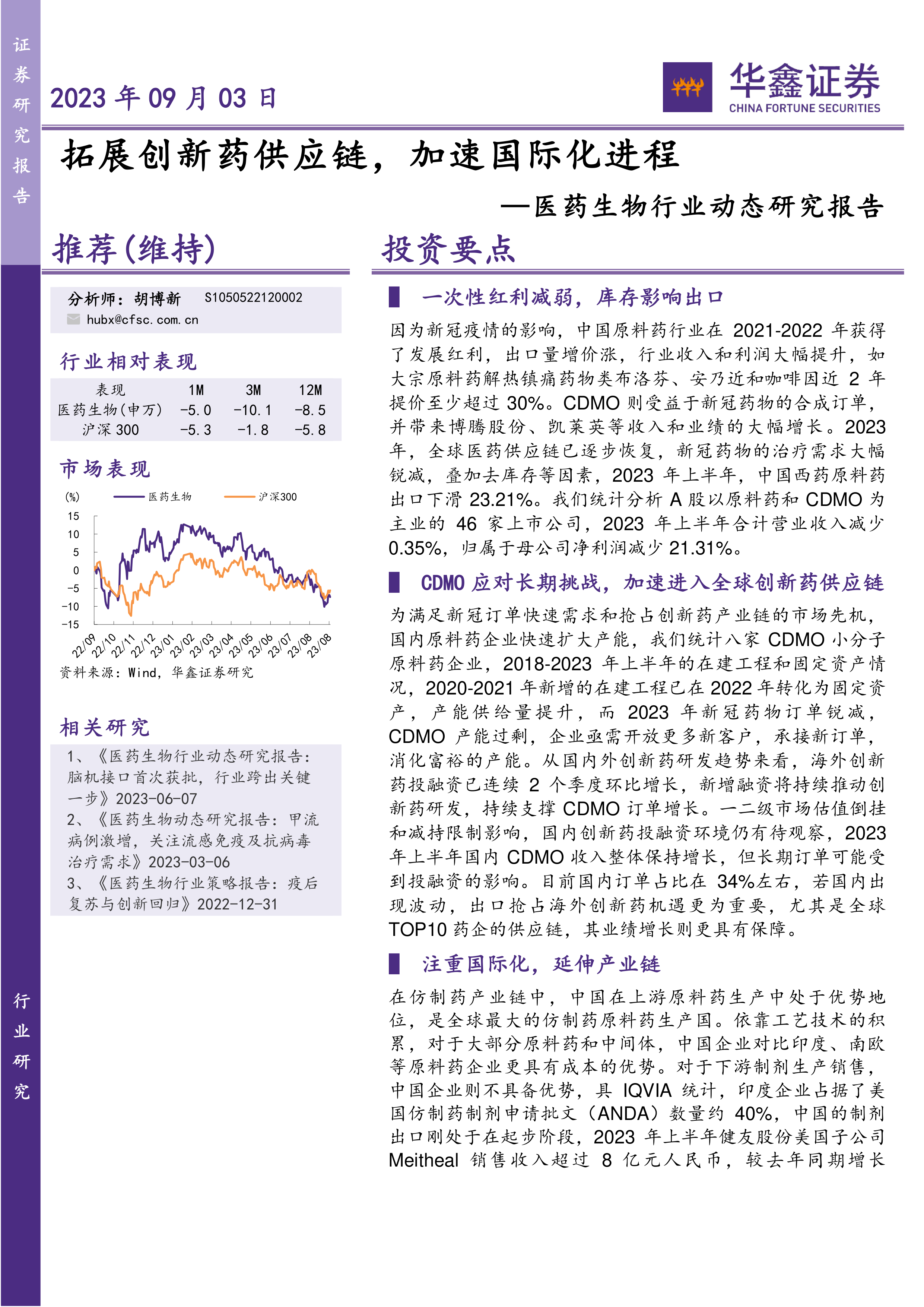 医药生物行业动态研究报告:拓展创新药供应链,加速国际化进程