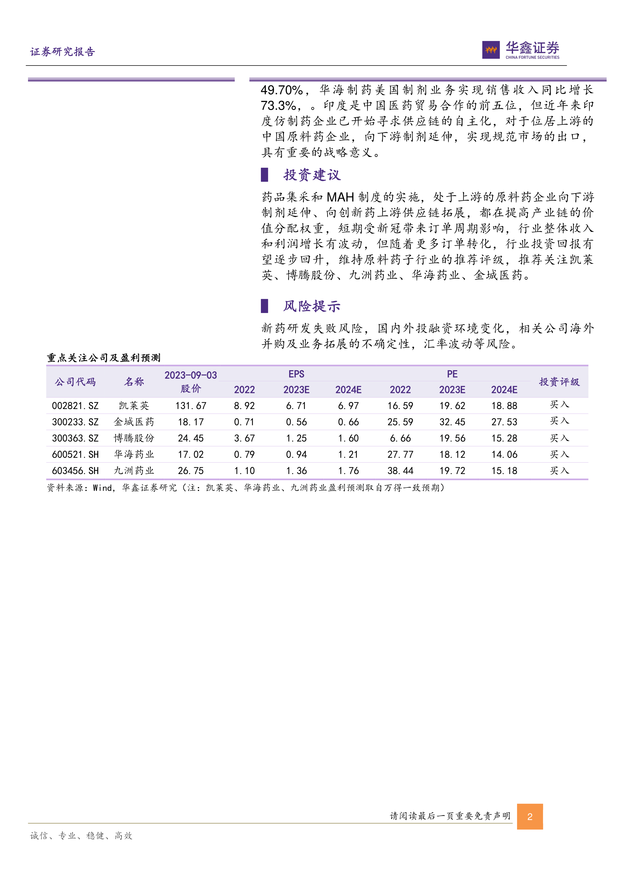 报告重点推荐了凯莱英、金城医药、博腾股份、华海药业和九洲药业五家公司,并分别从公司业务、发展战略、财务状况等方面进行了详细分析。