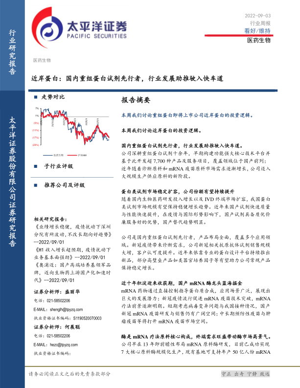 医药生物行业周报:近岸蛋白:国内重组蛋白试剂先行者,行业发展助推驶入快车道