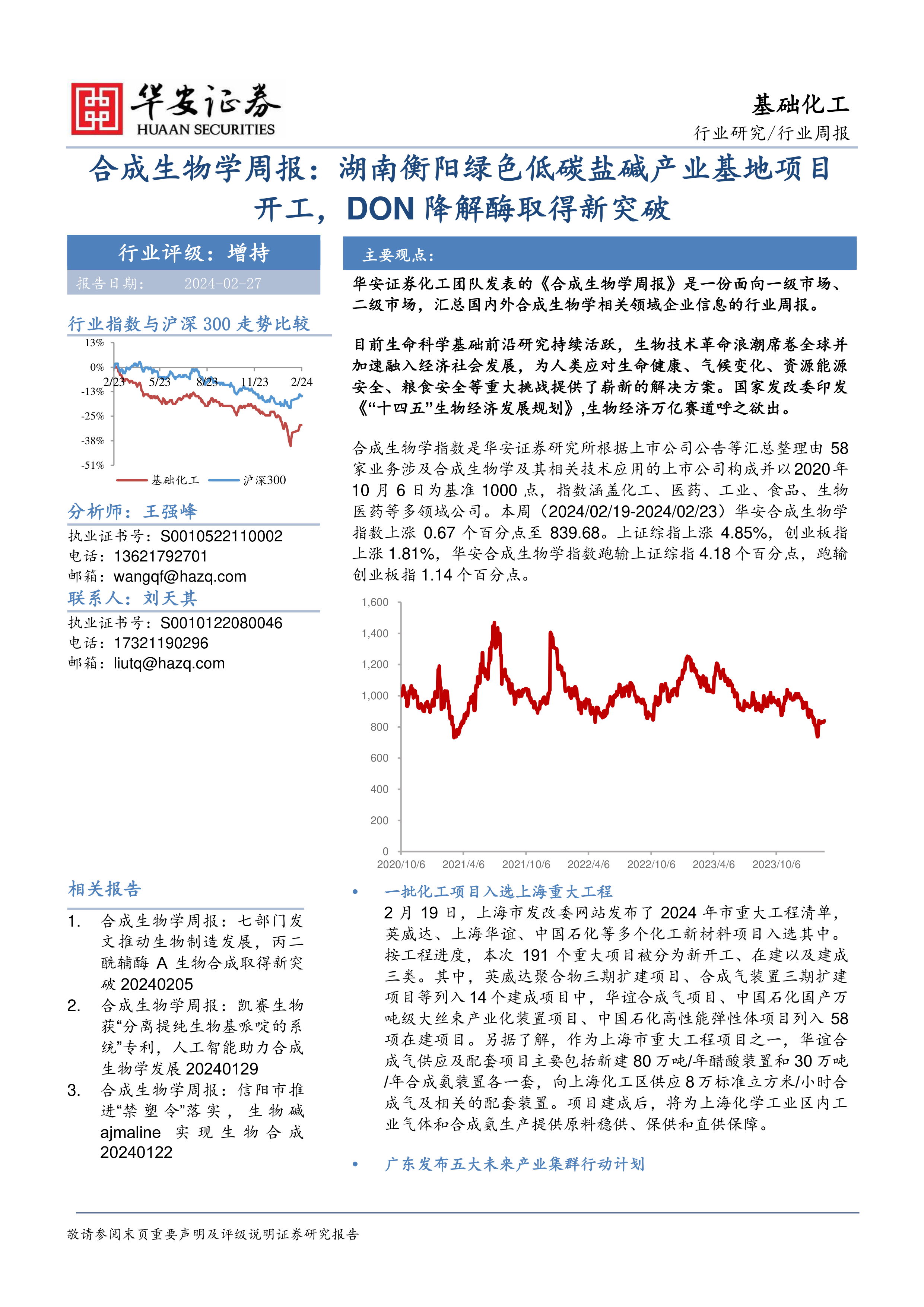 合成生物学周报:湖南衡阳绿色低碳盐碱产业基地项目开工,DON降解酶取得新突破