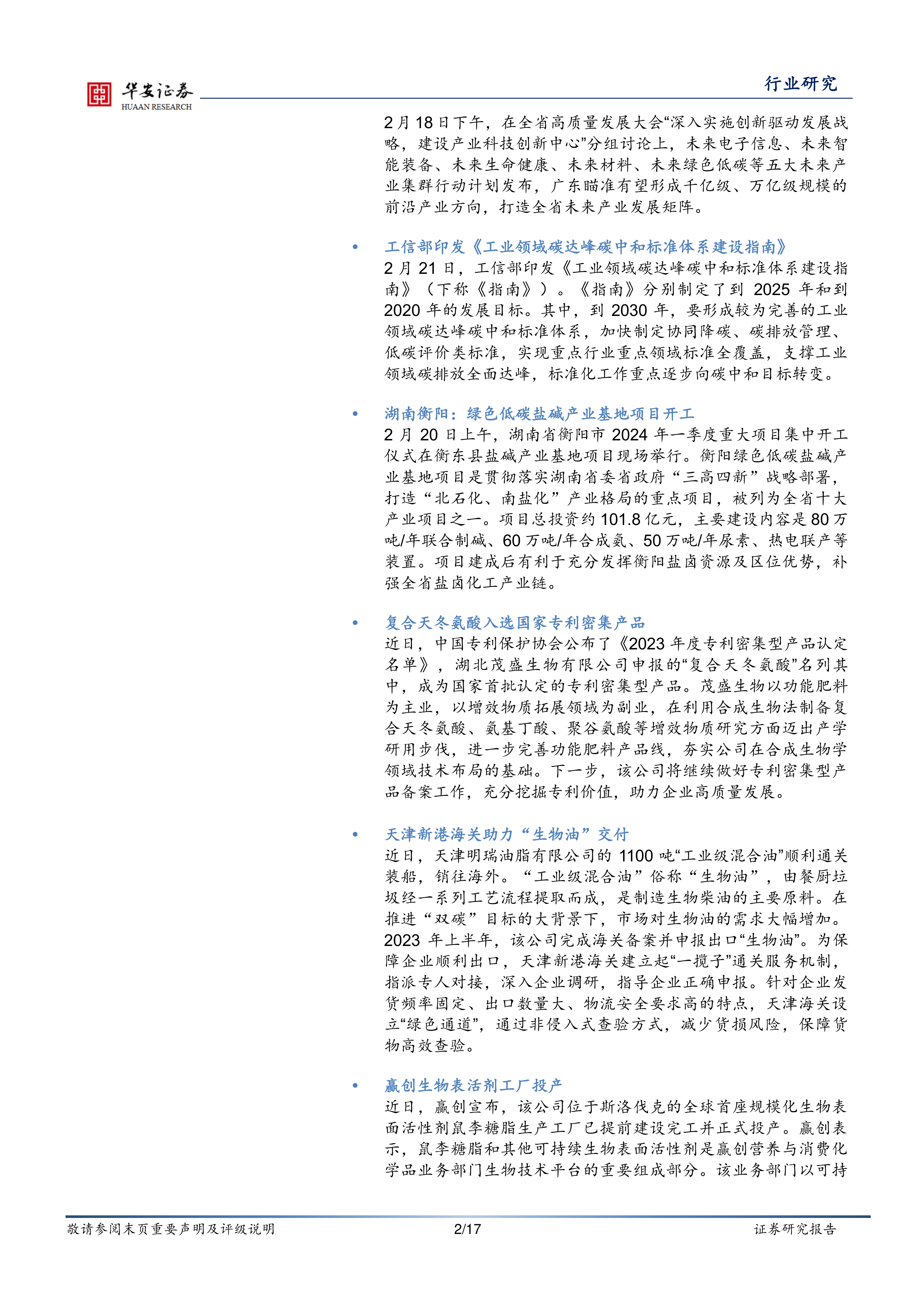 基础化工行业周报:五部门出台零碳工厂建设意见,美国拟敲定年度生物燃料配额