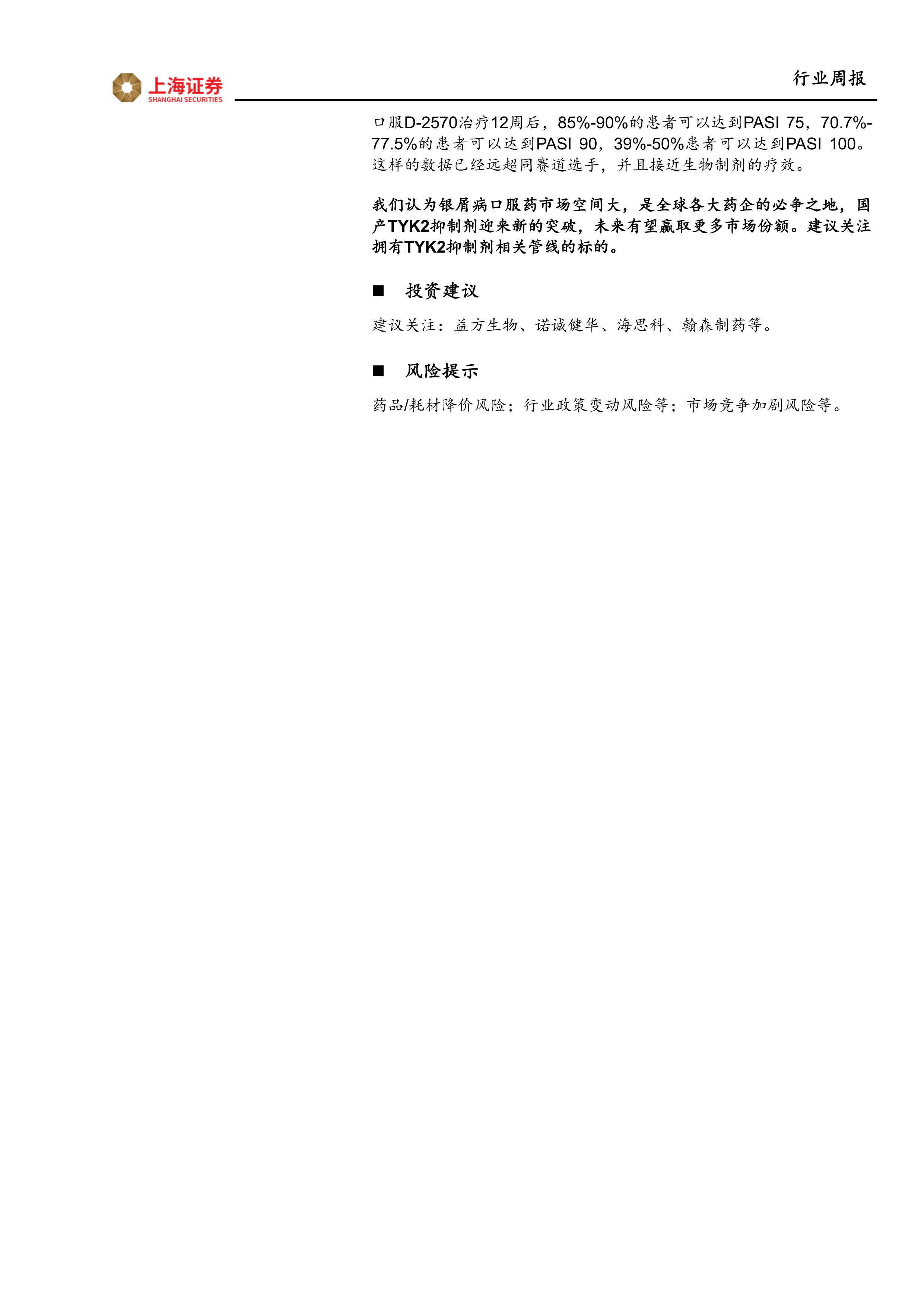 医药生物行业周报:银屑病市场空间大,国产TYK2抑制剂迎来新突破
