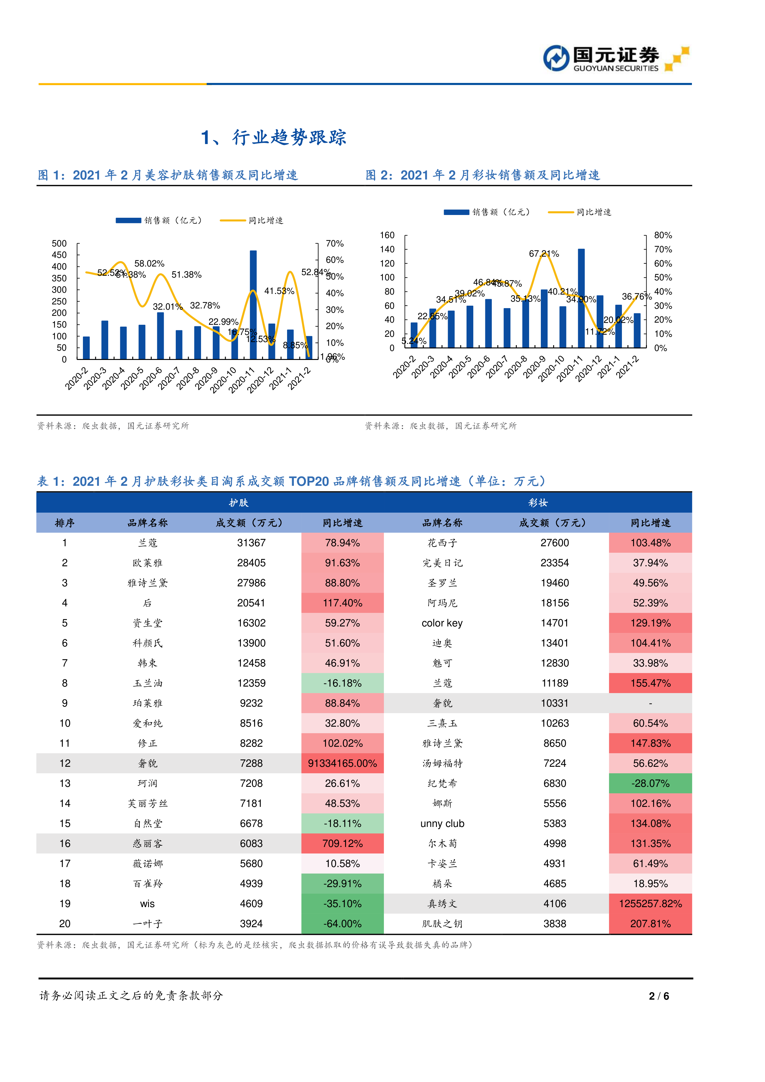 本报告基于2021年2月化妆品行业数据,对市场进行分析,核心观点如下: