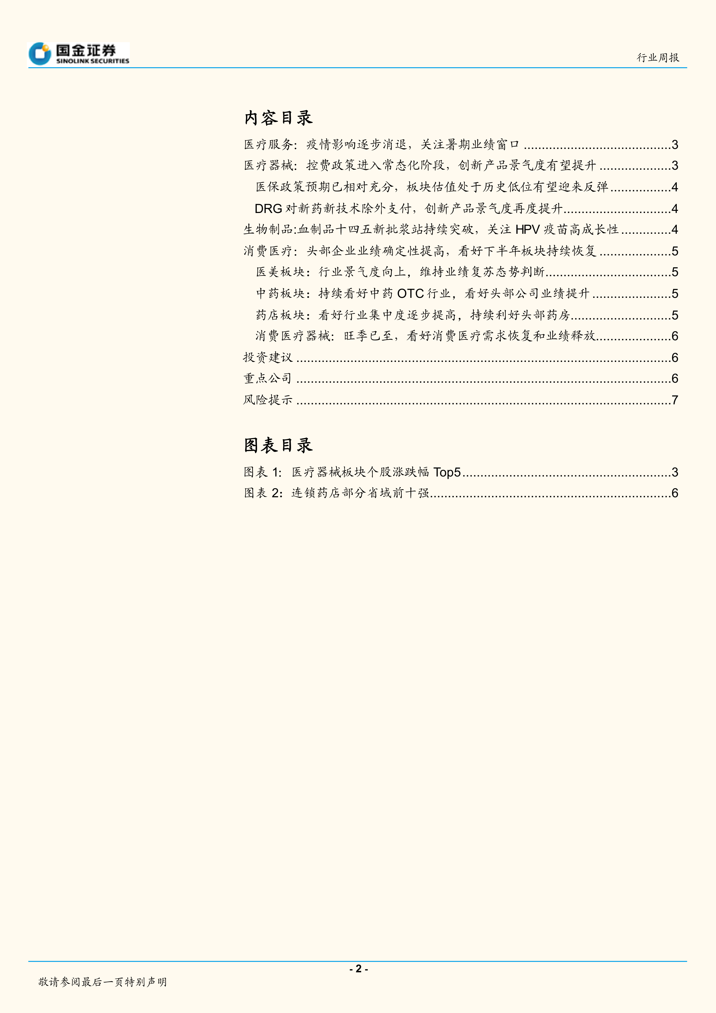我们认为当前时点是加配医疗板块的重要机会窗口。 一方面, 随着第七批带量采购、关节和骨科集采的逐步落地,市场对集中采购的认知逐渐成熟, 医药板块的政策预期和情绪基本已经触达底部。 另一方面, 医疗板块整体半年报业绩处于相对低位, Q3、 Q4 反转和持续增长的空间较大, 下半年企业有望实现估值和业绩的双重修复。