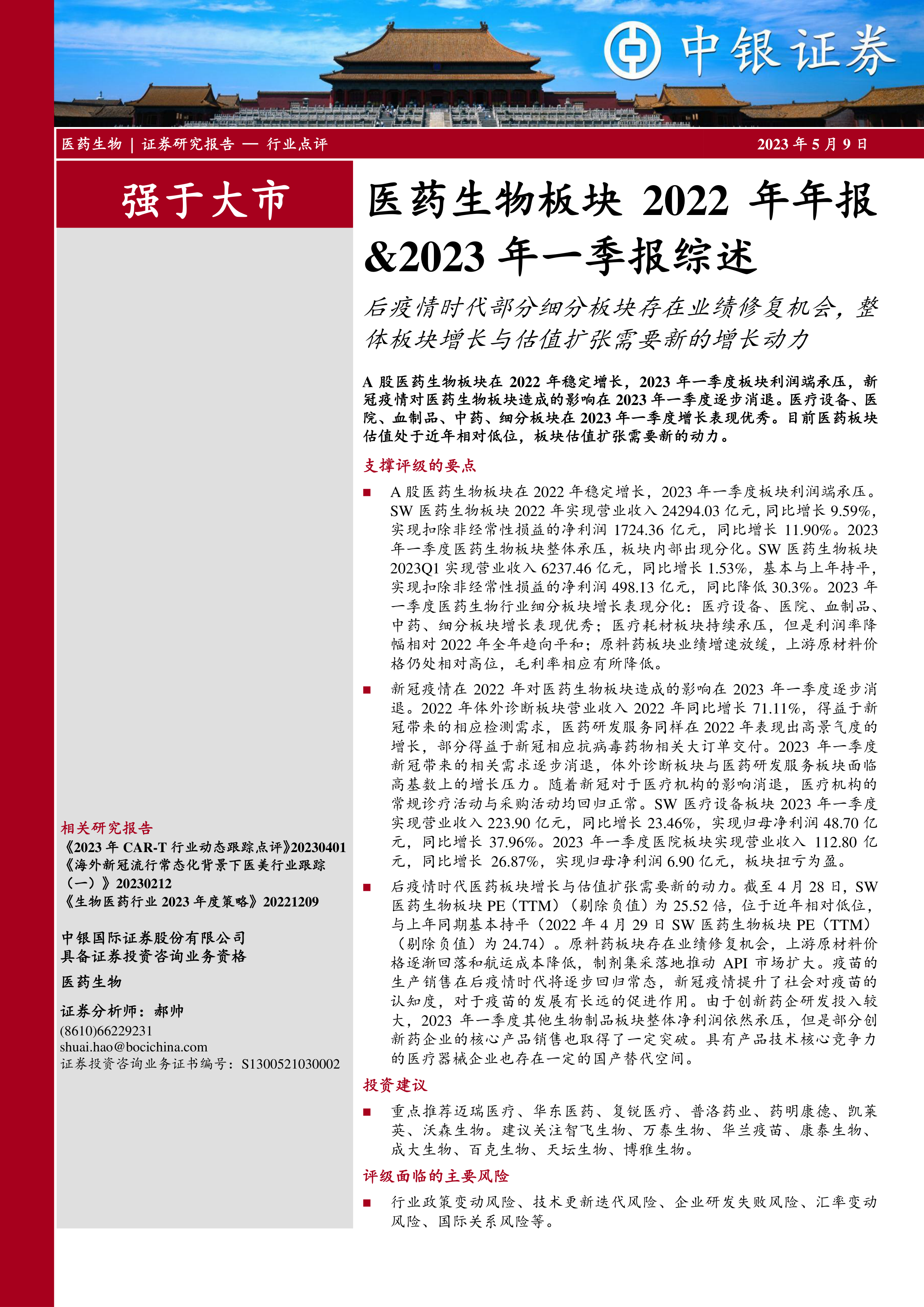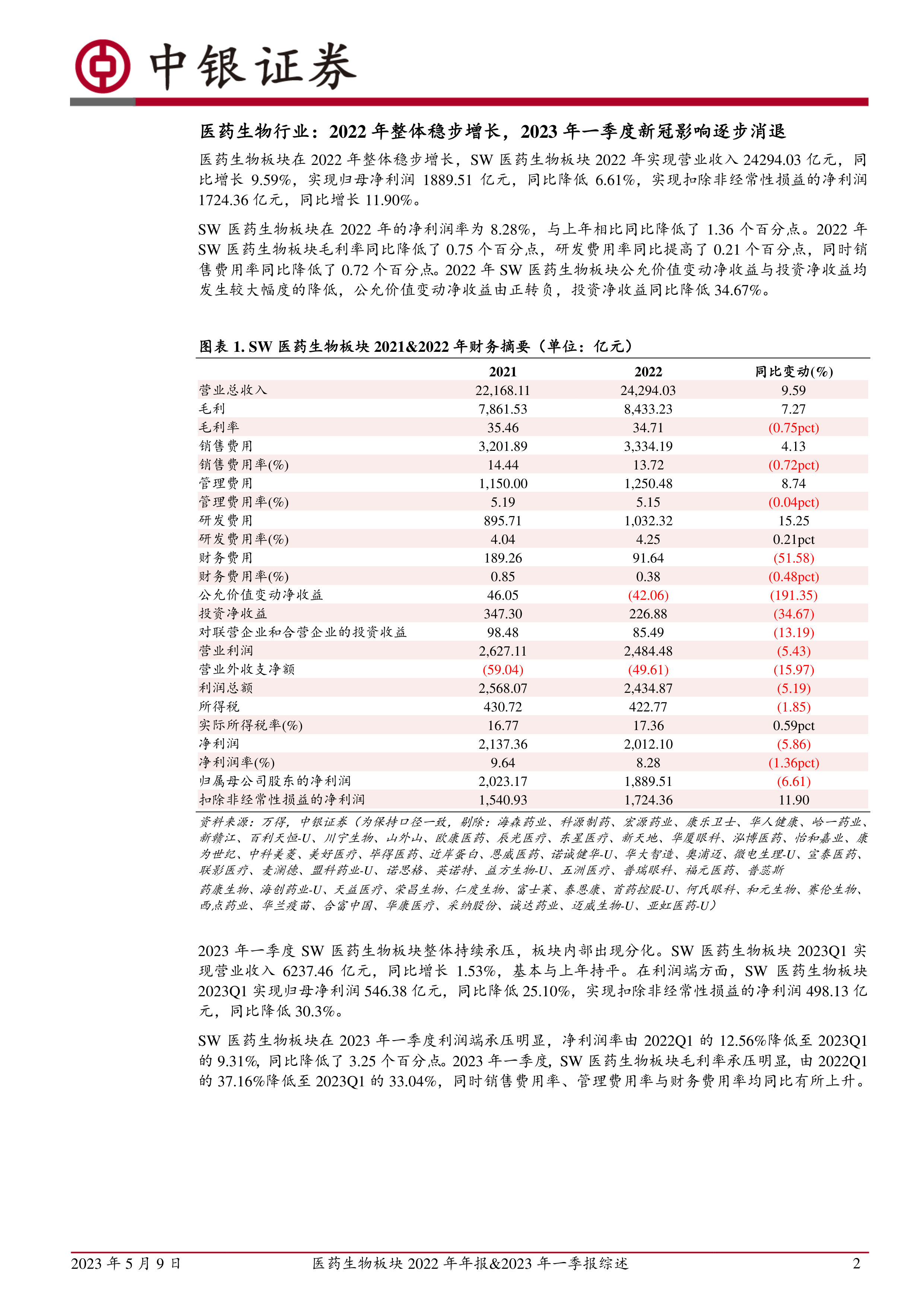 医药生物板块2022年年报&2023年一季报综述:后疫情时代部分细分板块存在业绩修复机会,整体板块增长与估值扩张需要新的增长动力