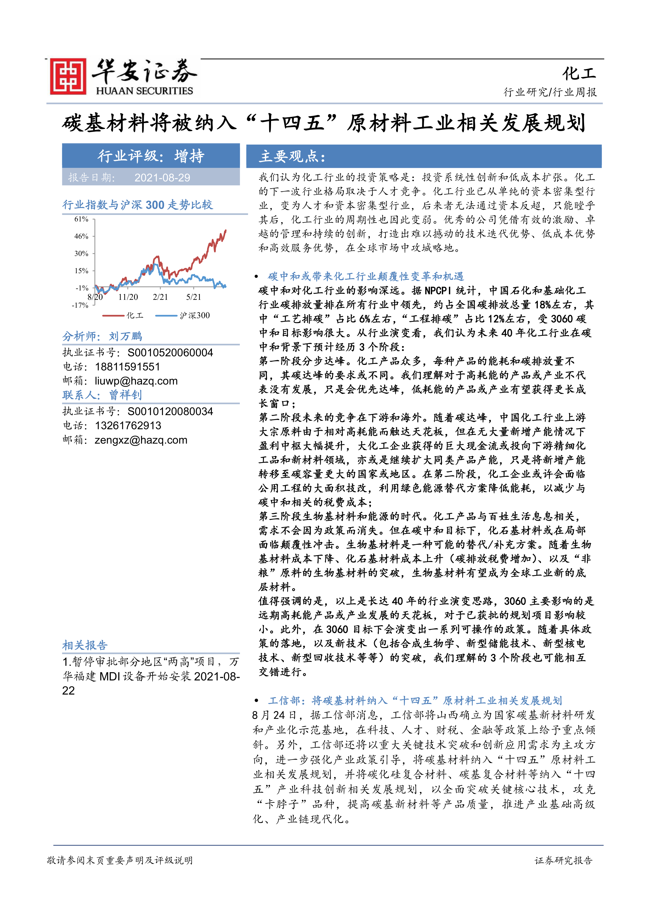 化工行业周报:碳基材料将被纳入“十四五”原材料工业相关发展规划
