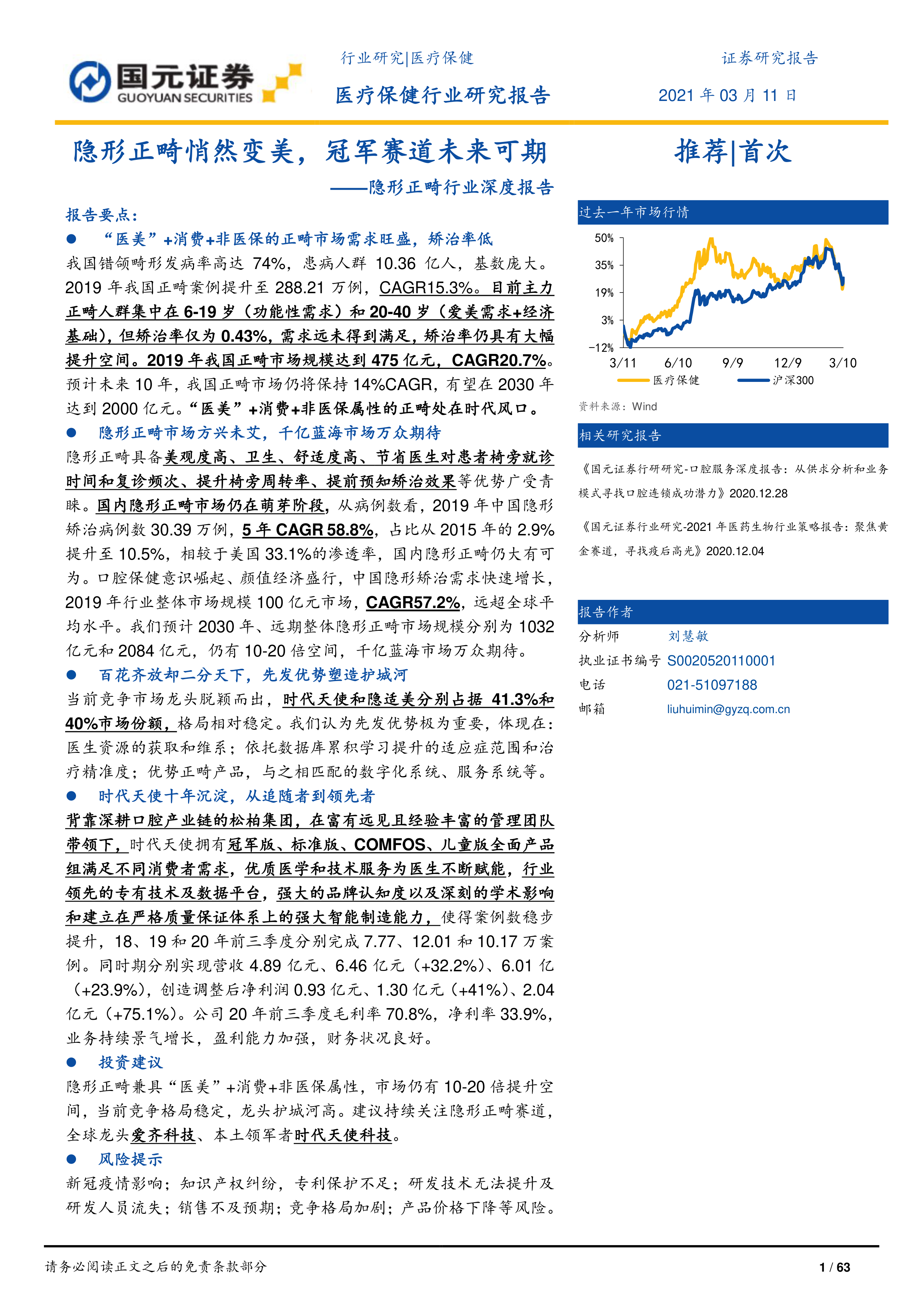 本报告对中国隐形正畸市场和时代天使科技进行了深入分析。报告指出,中国隐形正畸市场潜力巨大,时代天使作为国内龙头企业,凭借其先发优势、技术创新和强大的市场推广能力,有望持续受益于市场增长,未来发展前景广阔。然而,投资者也需要关注新冠疫情、市场竞争和知识产权等风险。