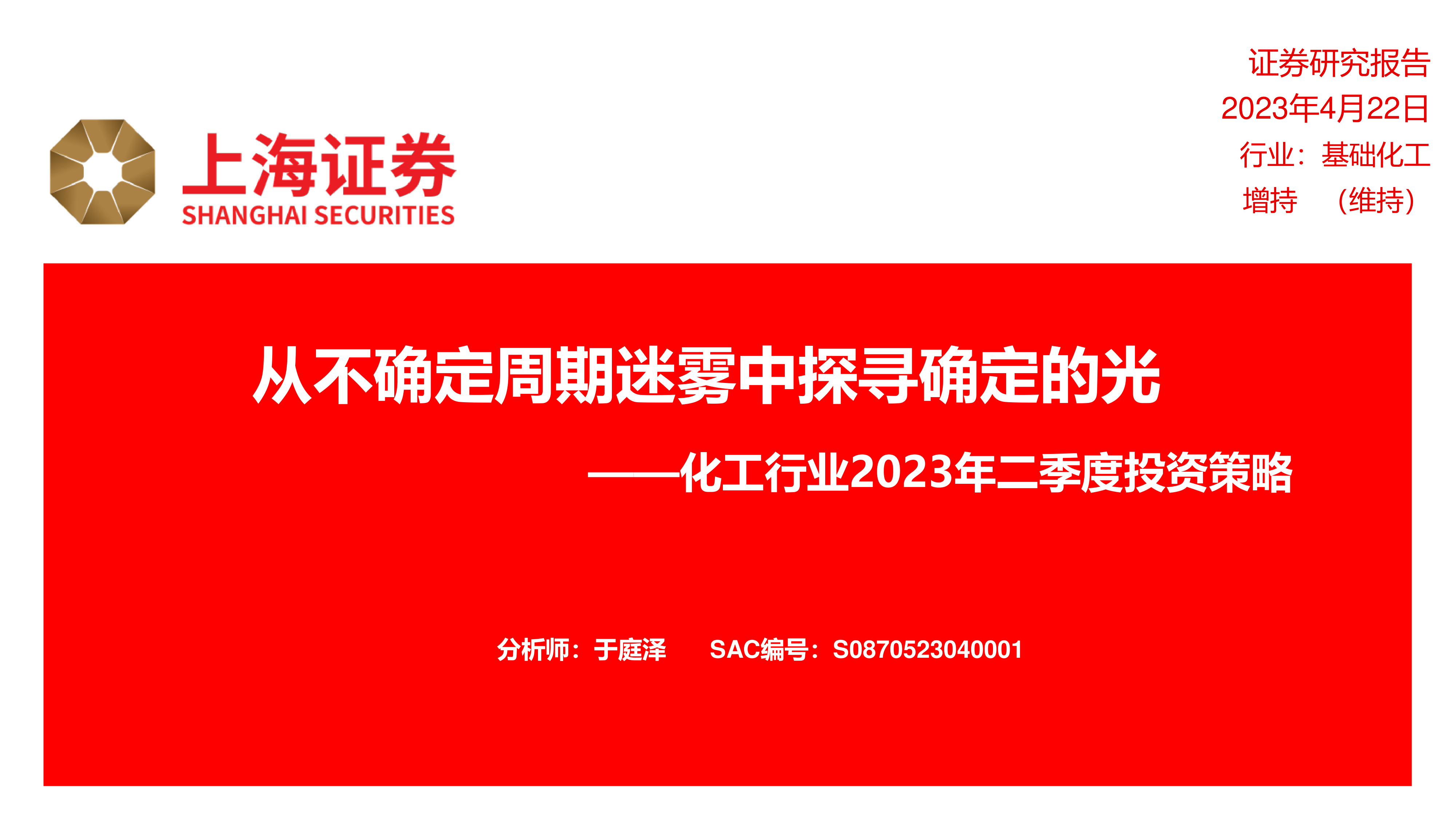 化工行业2023年二季度投资策略:从不确定周期迷雾中探寻确定的光