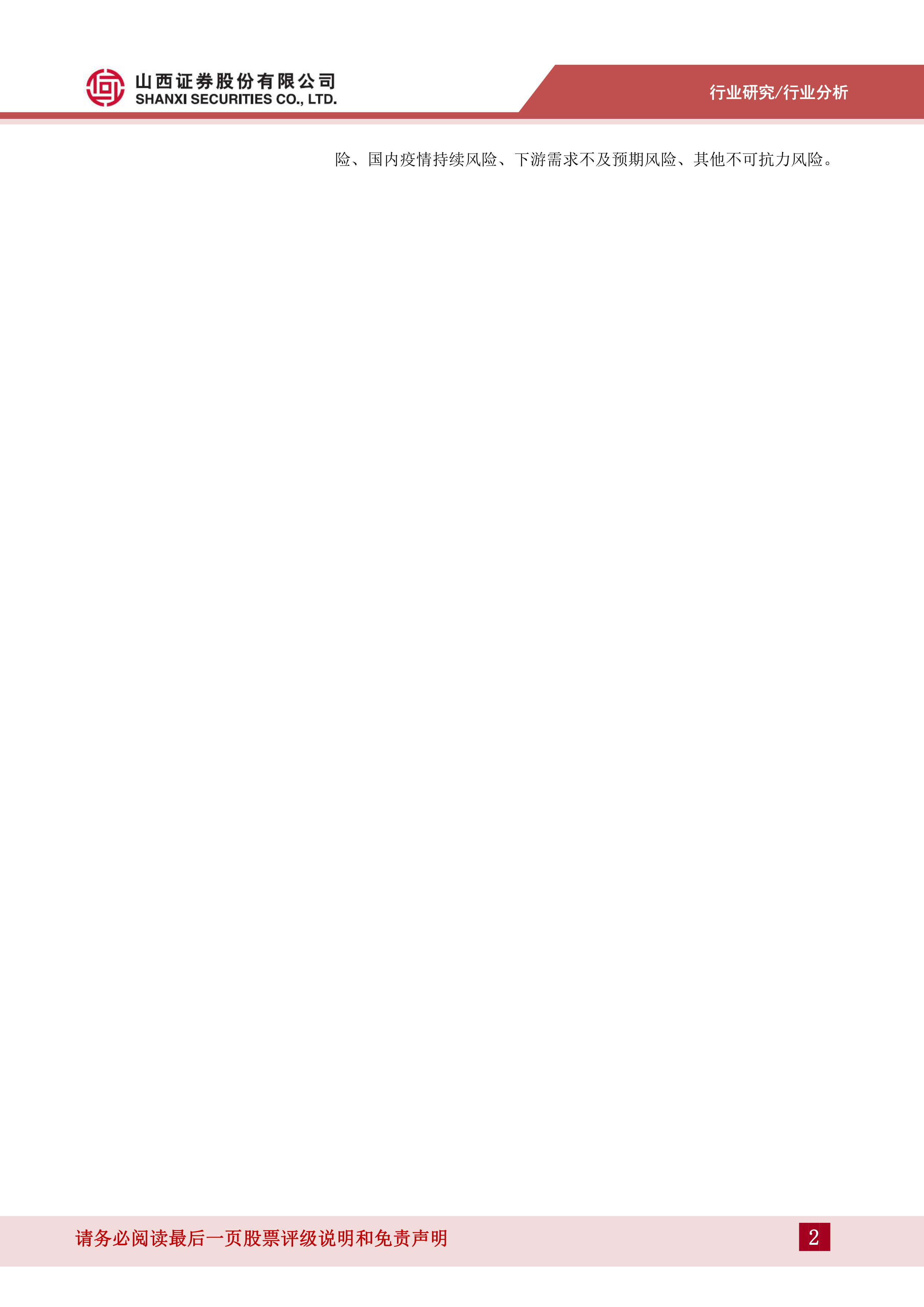 风险提示:环保政策、能耗双控下行业开工受限风险、原油价格大幅波动风险、国内疫情持续风险、下游需求不及预期风险、其他不可抗力风险。