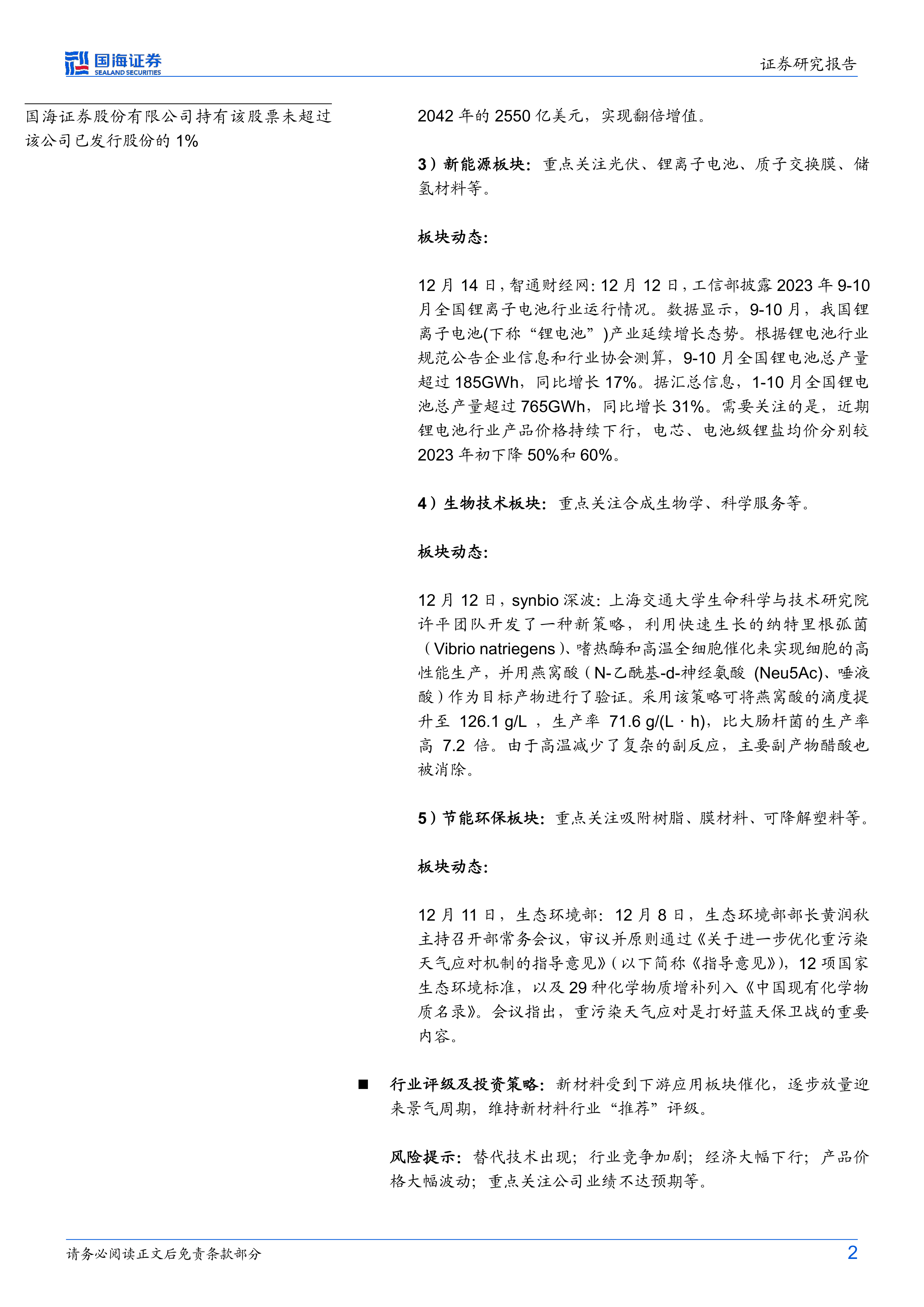 行业评级及投资策略:新材料受到下游应用板块催化,逐步放量迎来景气周期,维持新材料行业“推荐”评级。