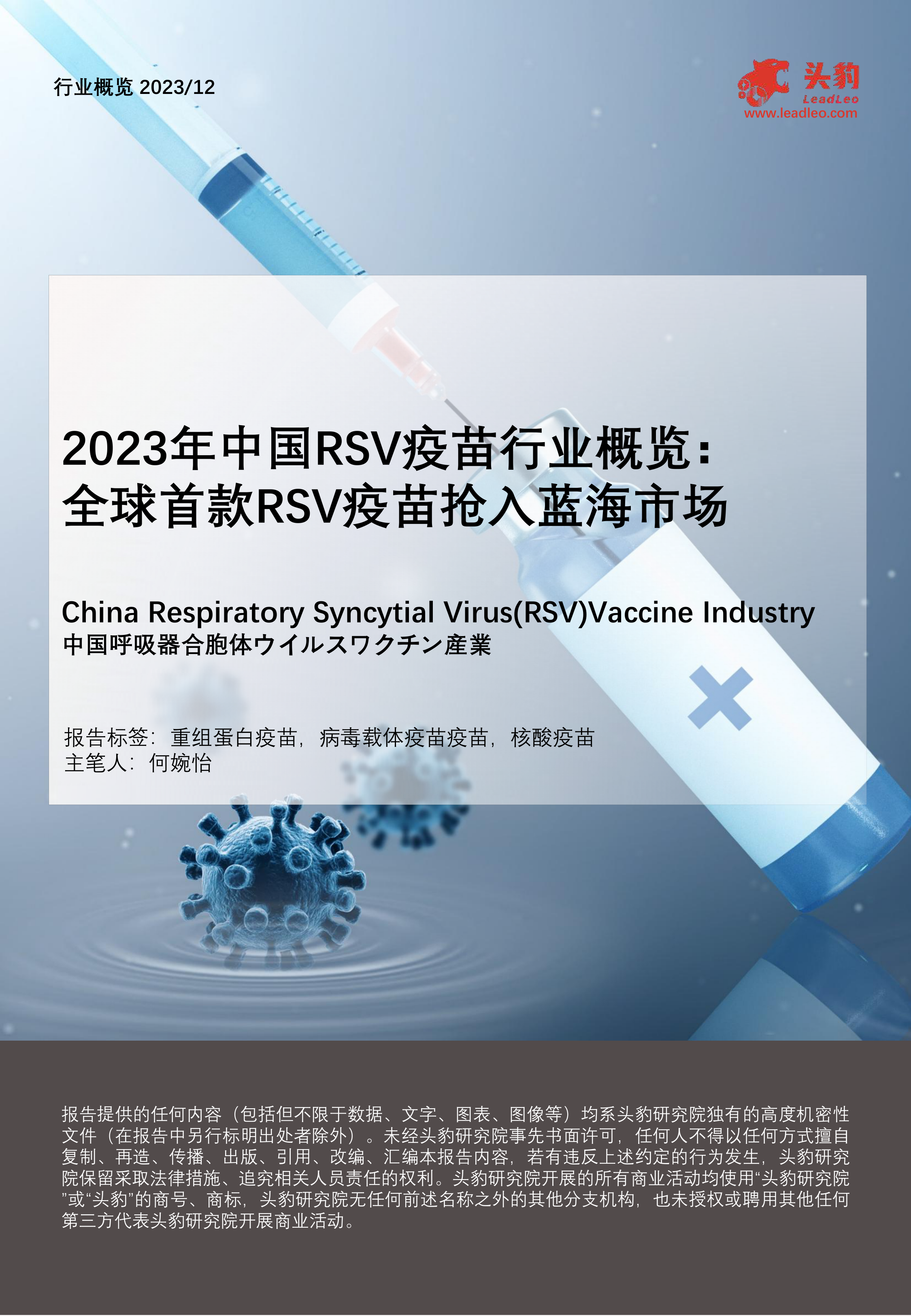 2023年中国RSV疫苗行业概览:全球首款RSV疫苗抢入蓝海市场