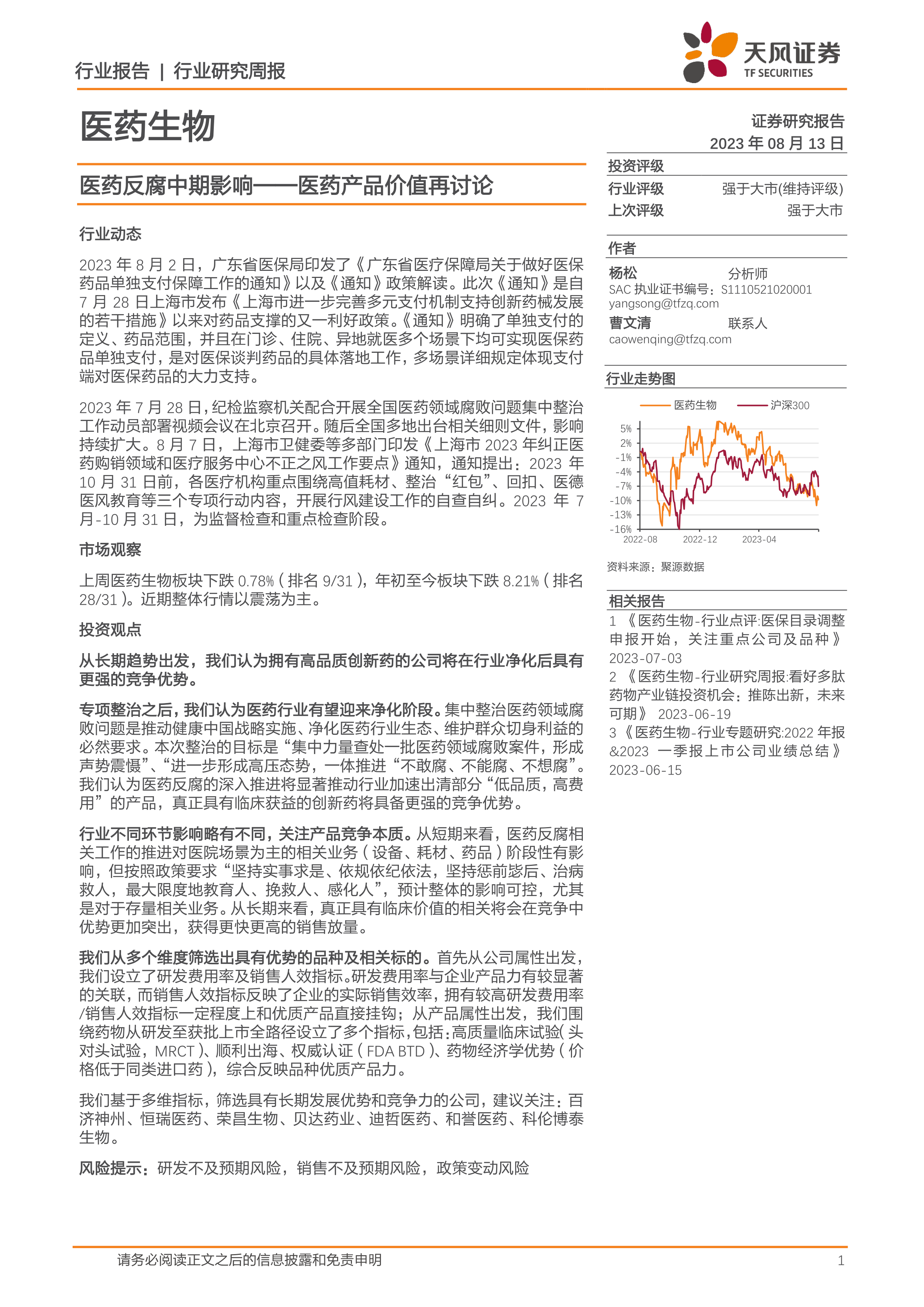 医药生物行业研究周报:医药产品价值再讨论-医药反腐中期影响