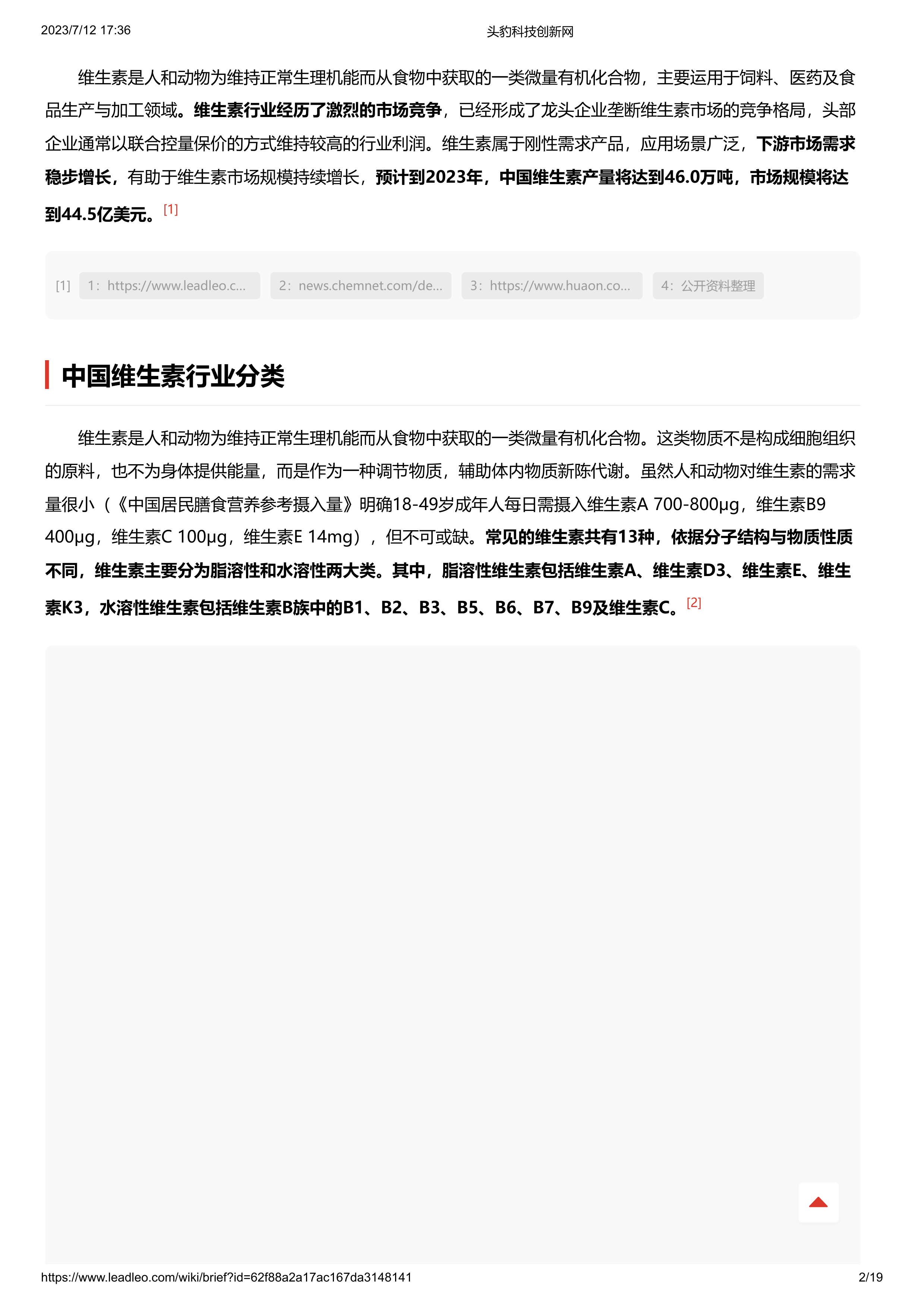 维生素 头豹词条报告系列