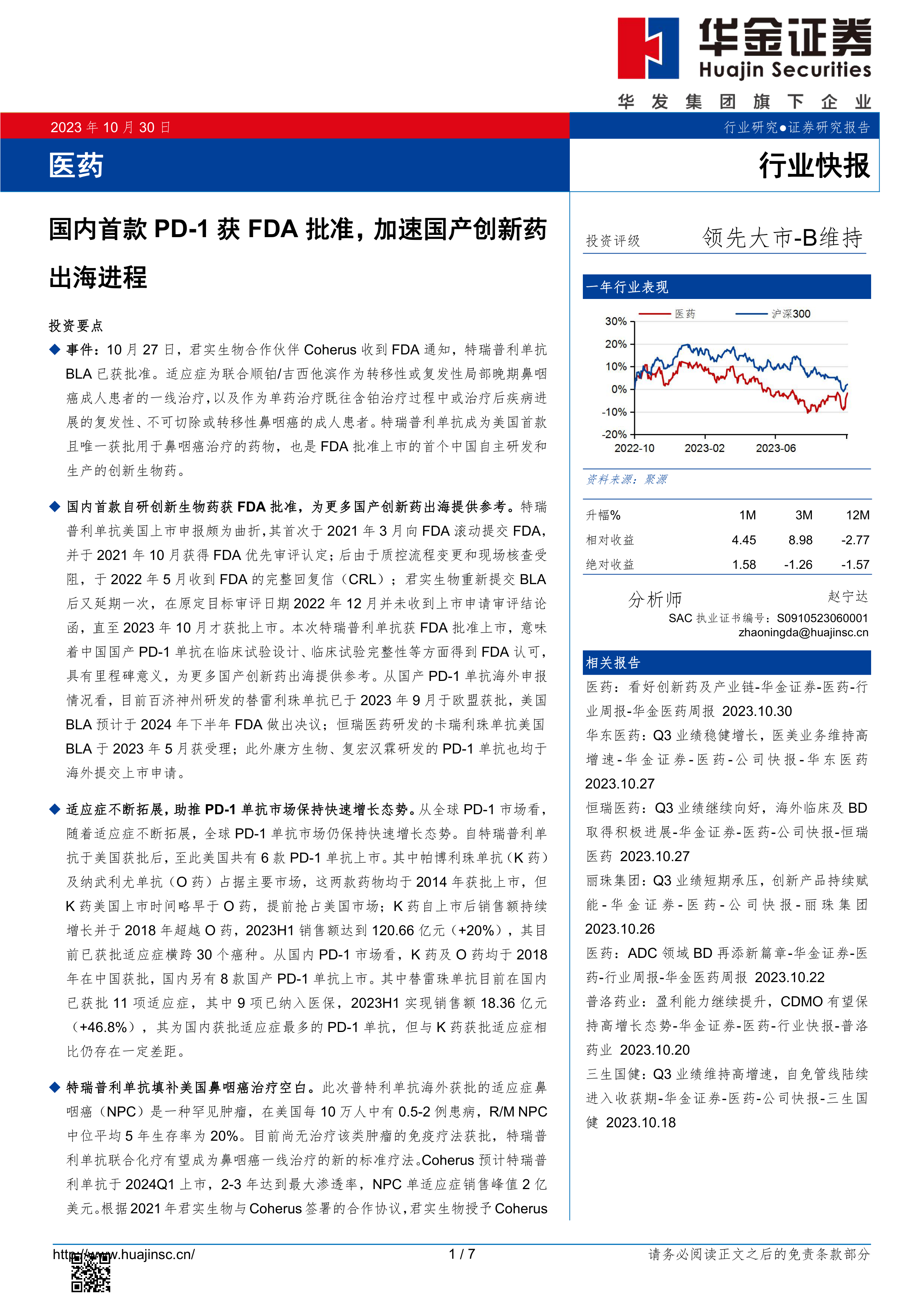 医药:国内首款PD-1获FDA批准,加速国产创新药出海进程