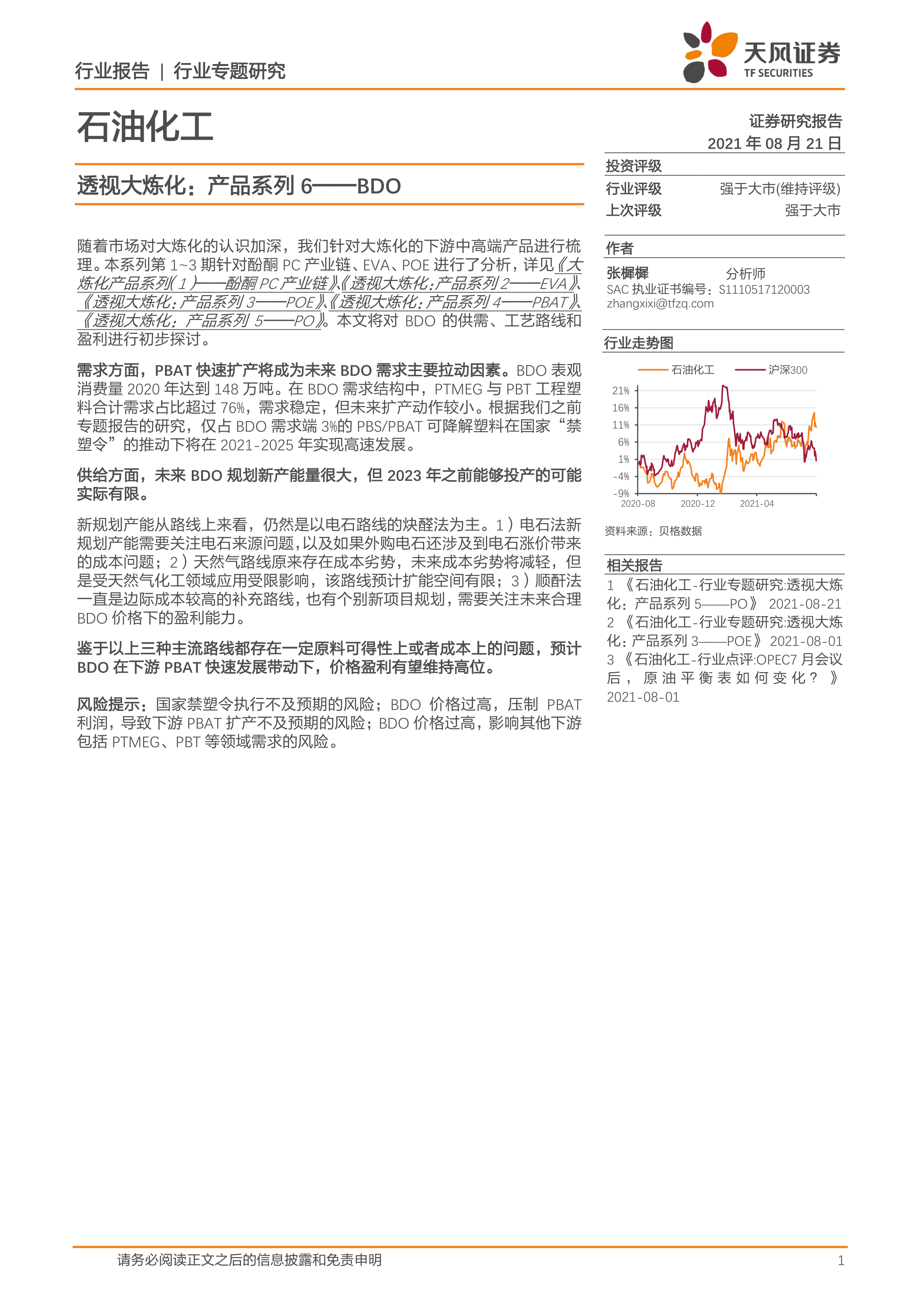 本报告对BDO的市场供需、工艺路线和盈利能力进行了分析,内容涵盖以下几个方面: