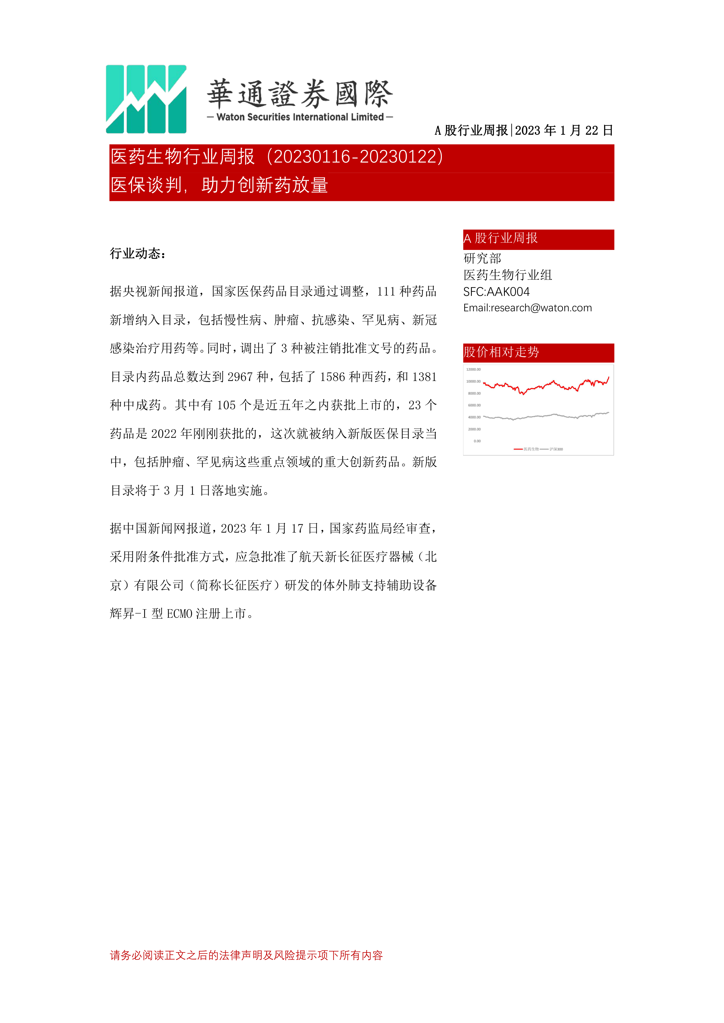 本报告分析了2023年1月国家医保药品目录调整和ECMO设备上市对医药生物行业的影响。医保目录调整利好创新药发展,ECMO设备上市将拓展重症救治能力。报告建议关注创新药龙头企业和ECMO领域相关公司,但同时也提示了创新药研发不及预期、药物疗效不及预期、ECMO效果不及预期等风险。 投资者需谨慎评估风险,并根据自身情况做出投资决策。 本报告仅供参考,不构成投资建议。