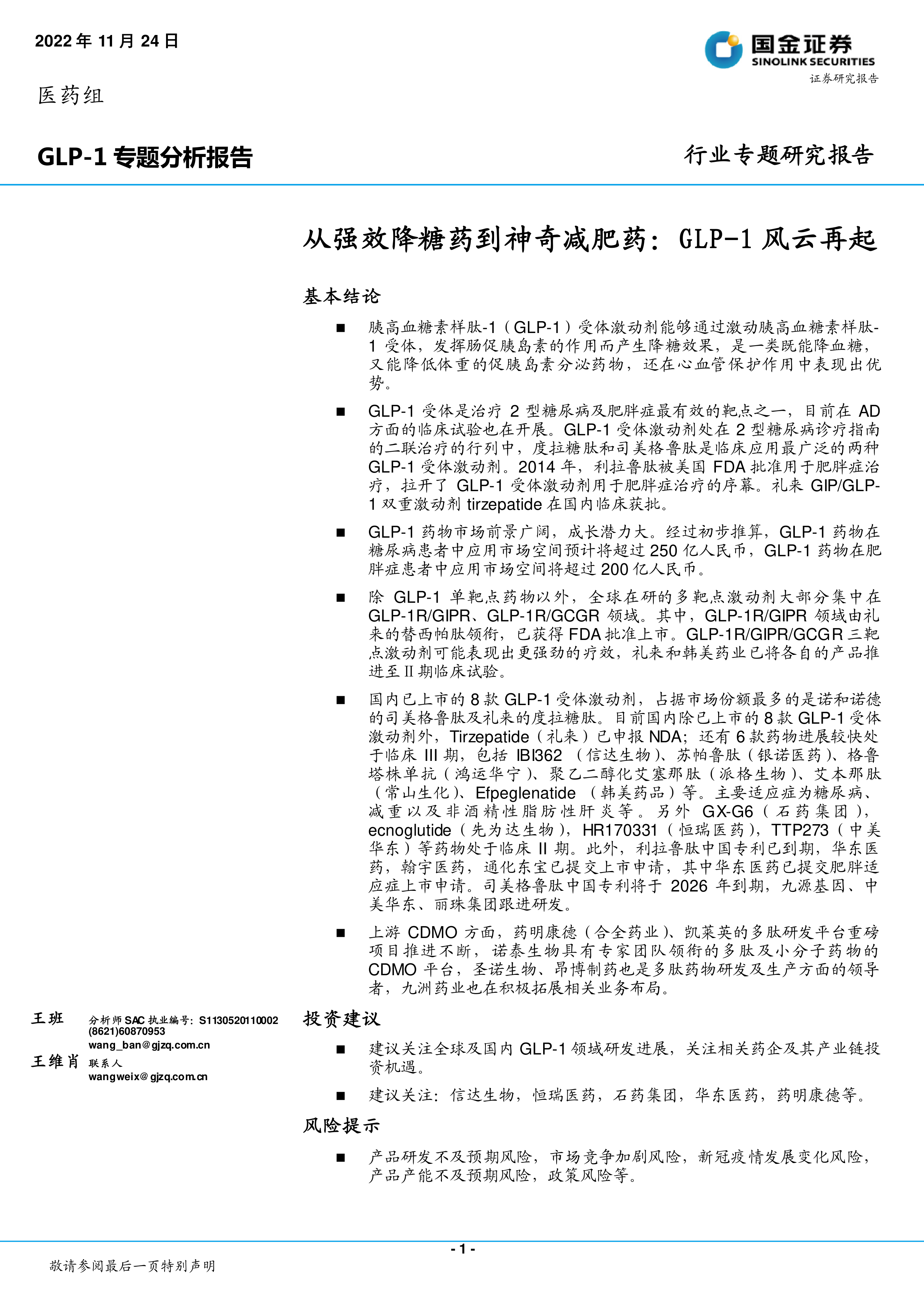 本报告从GLP-1靶点、作用机制、市场竞争格局、国内外研发进展以及产业链等方面进行了深入分析。