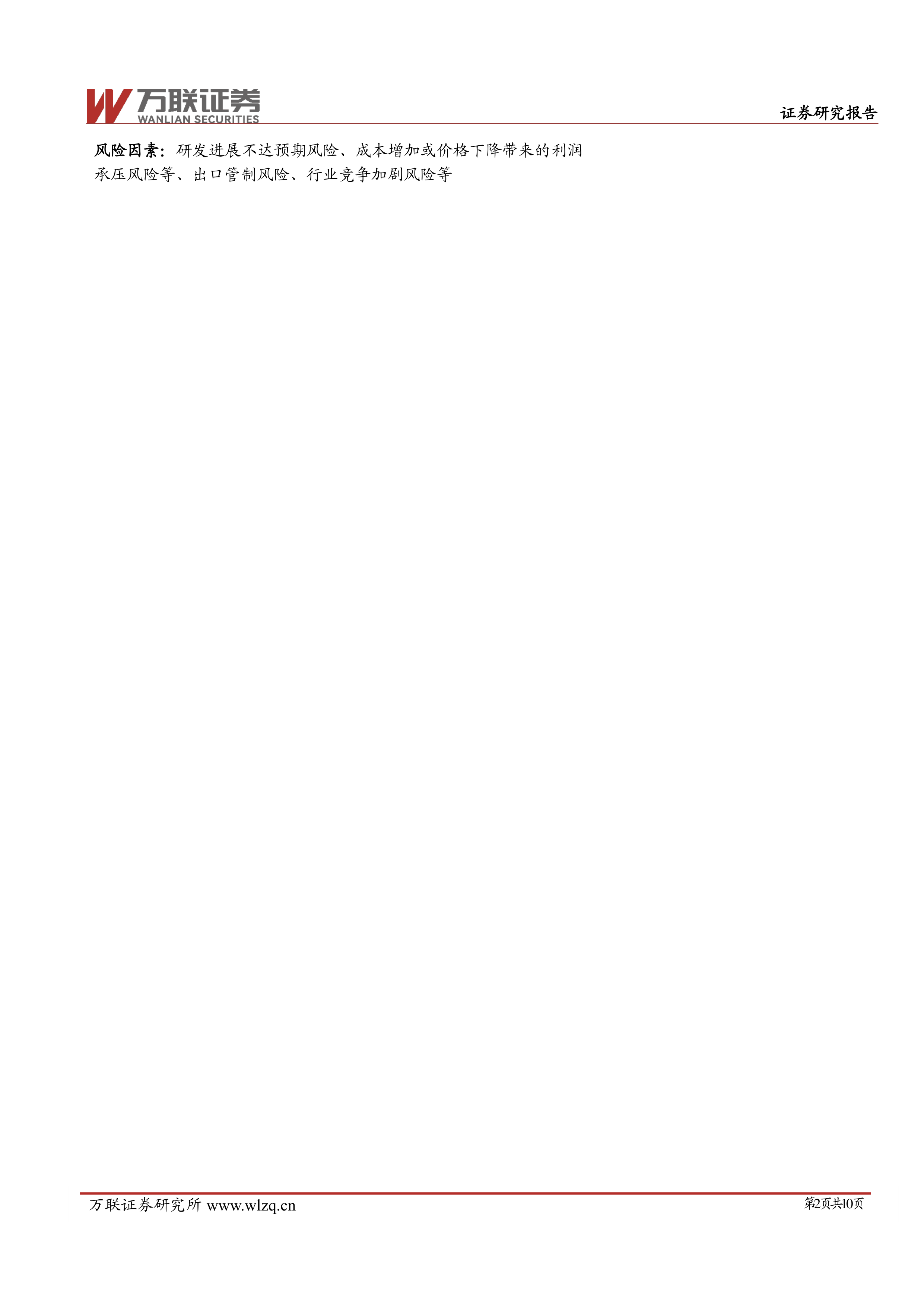 风险因素:研发进展不达预期风险、成本增加或价格下降带来的利润承压风险等、出口管制风险、行业竞争加剧风险等