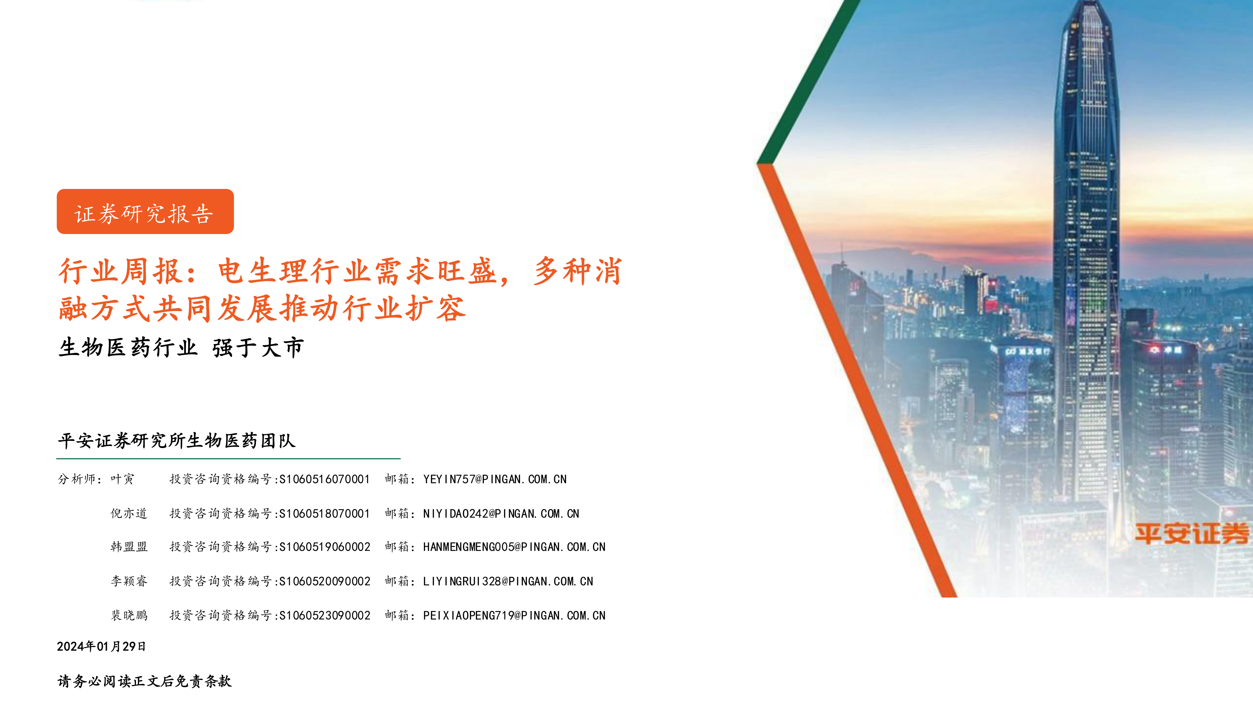 本报告主要从行业观点、投资策略、重点关注公司和行业要闻等方面分析了生物医药行业,特别是电生理领域的发展现状和未来趋势。