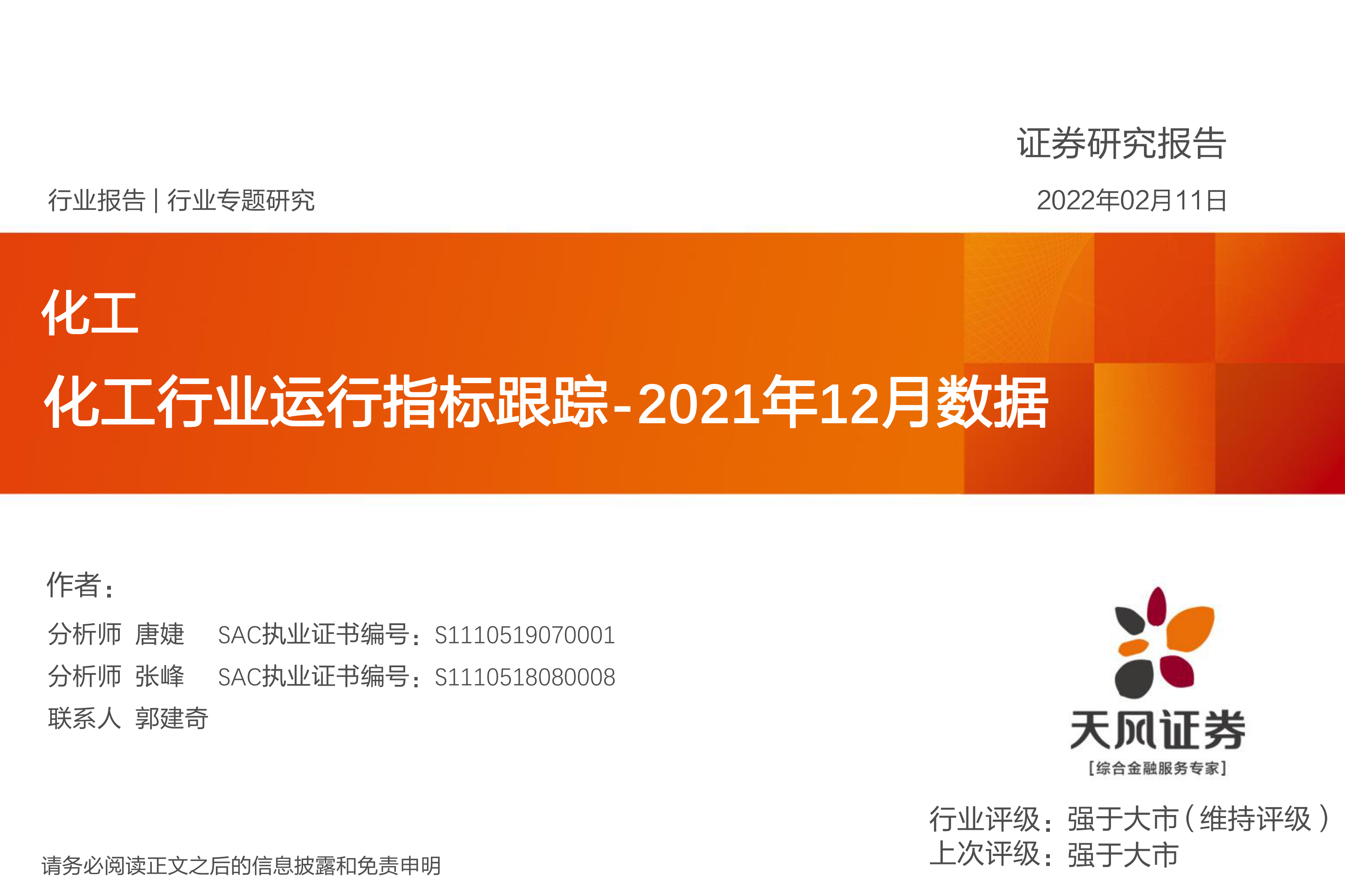 本报告基于2021年12月数据,对化工行业运行指标进行跟踪分析,并对未来行业发展趋势进行展望。核心观点如下: