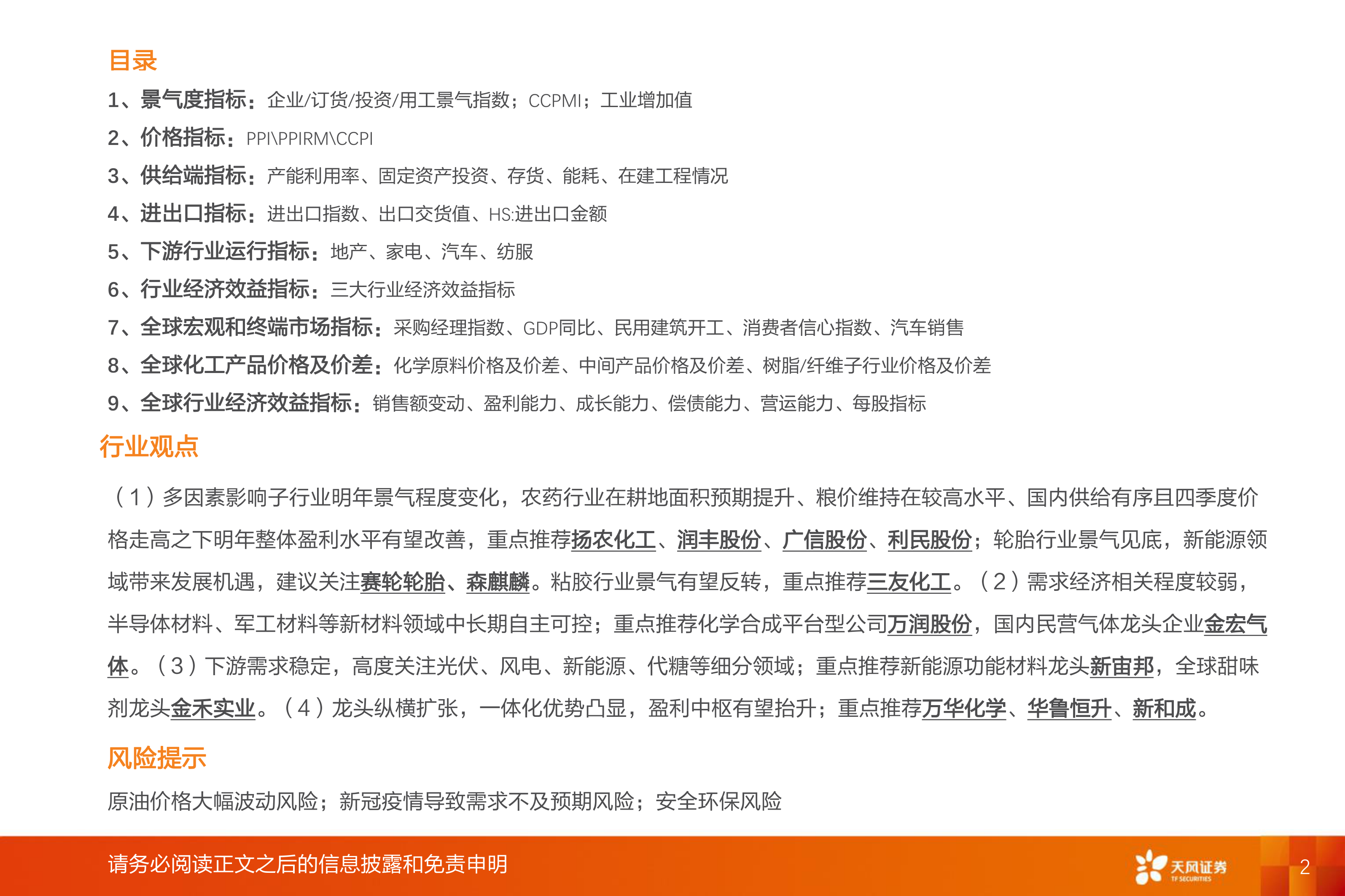 报告根据对上述指标的分析,提出了具体的投资建议,重点推荐了扬农化工、润丰股份、广信股份、利民股份、赛轮轮胎、森麒麟、三友化工、万润股份、金宏气体、新宙邦、金禾实业、万华化学、华鲁恒升、新和成等公司。
