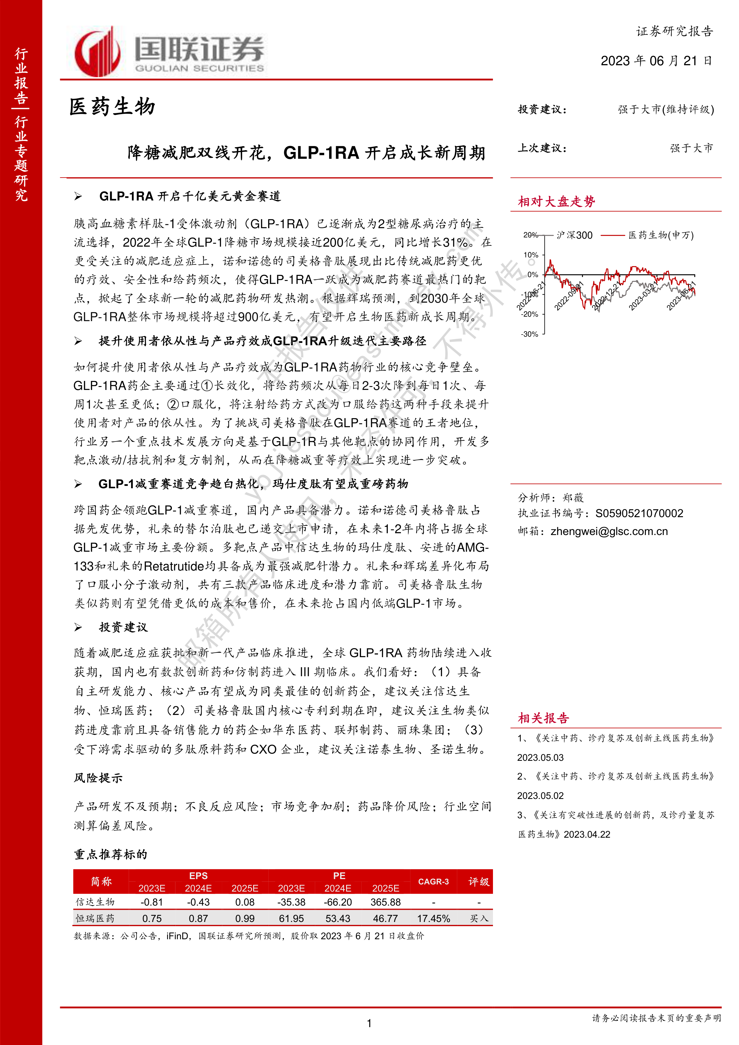 医药生物:降糖减肥双线开花,GLP-1RA开启新成长周期