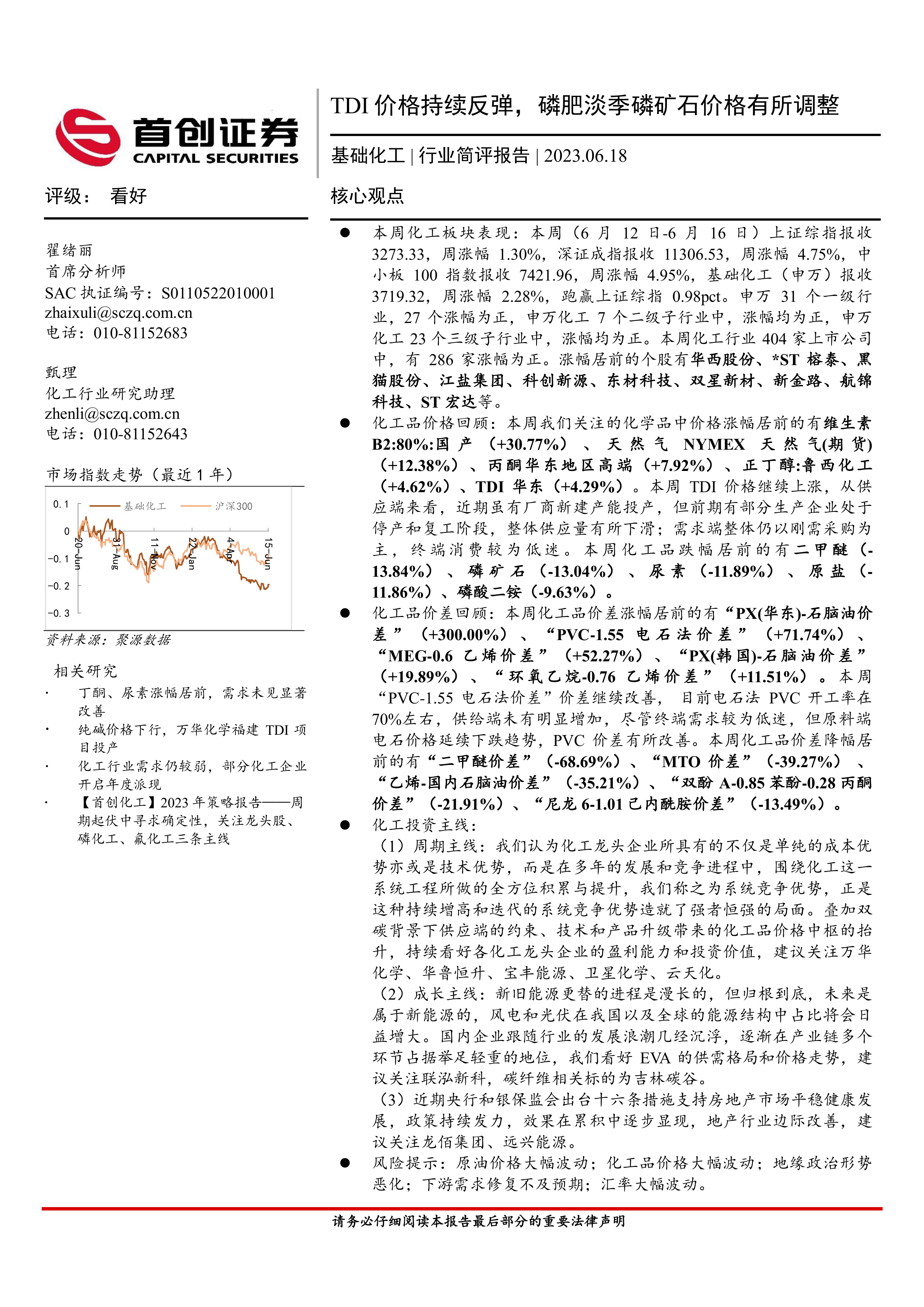 基础化工行业简评报告:TDI价格持续反弹,磷肥淡季磷矿石价格有所调整