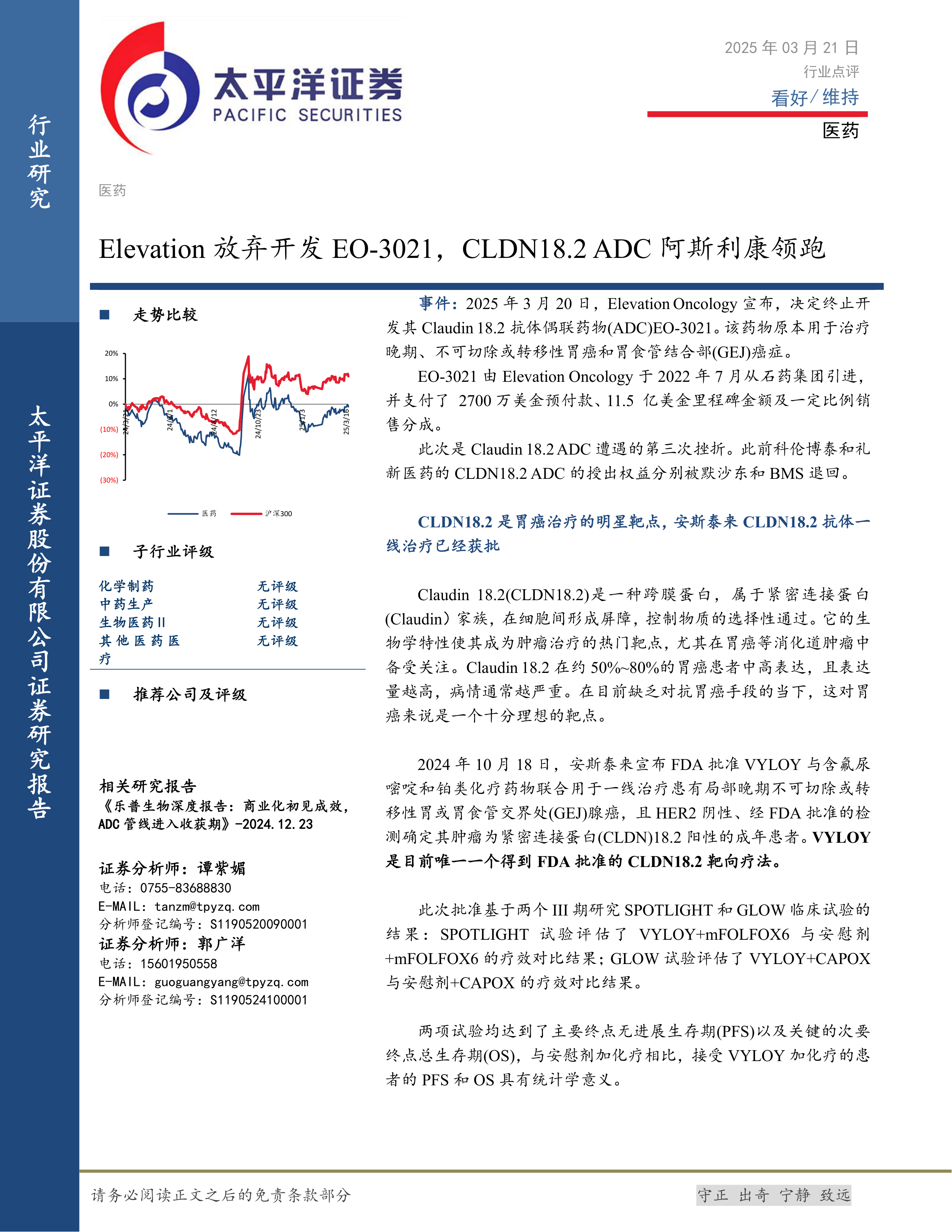 本报告主要围绕Elevation Oncology放弃开发EO-3021这一事件展开,并对CLDN18.2 ADC药物研发市场进行了深入分析。