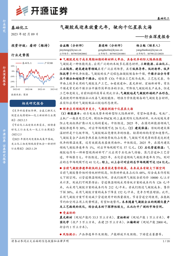 基础化工行业深度报告:气凝胶或迎来放量元年,驶向千亿星辰大海
